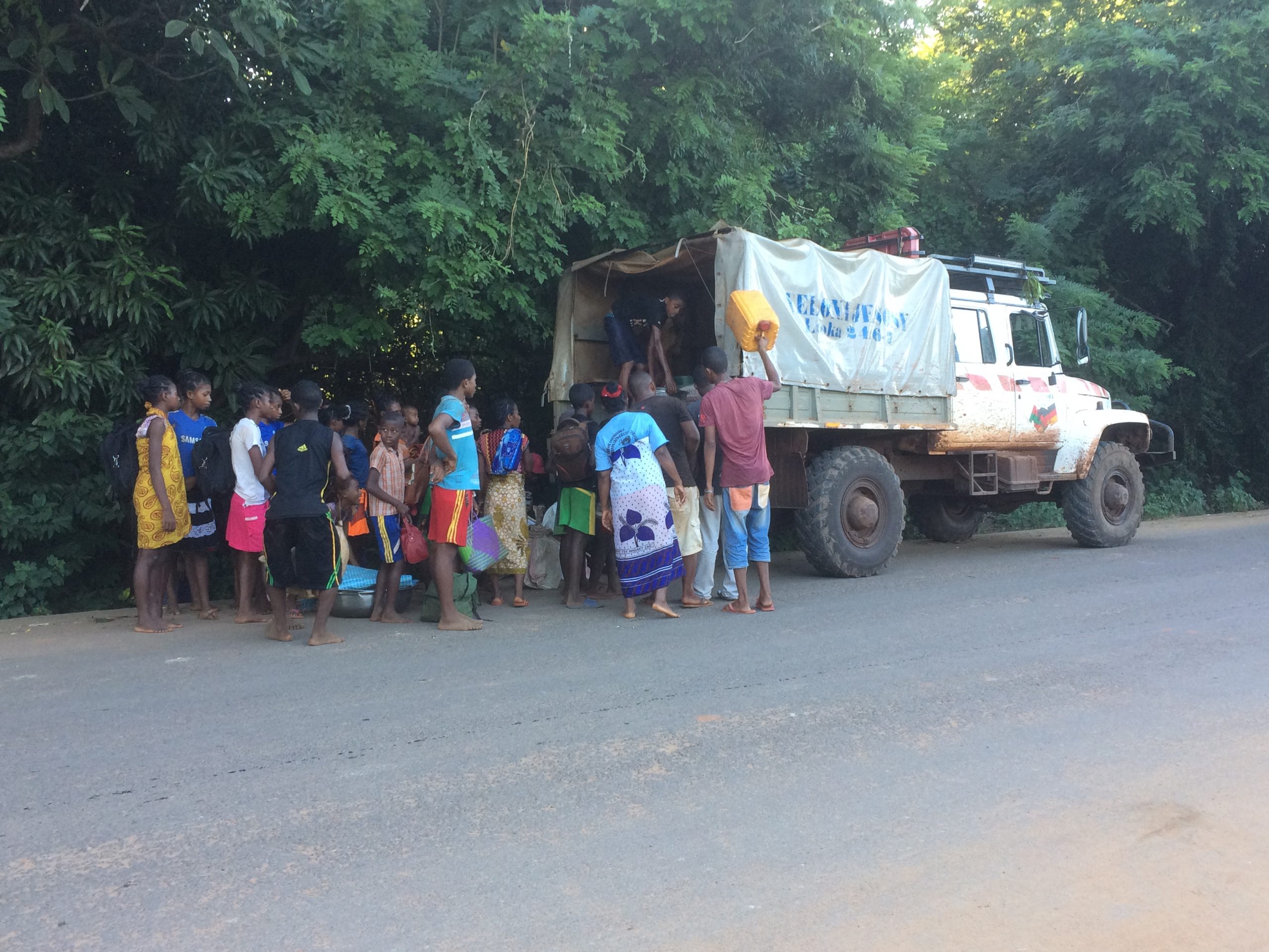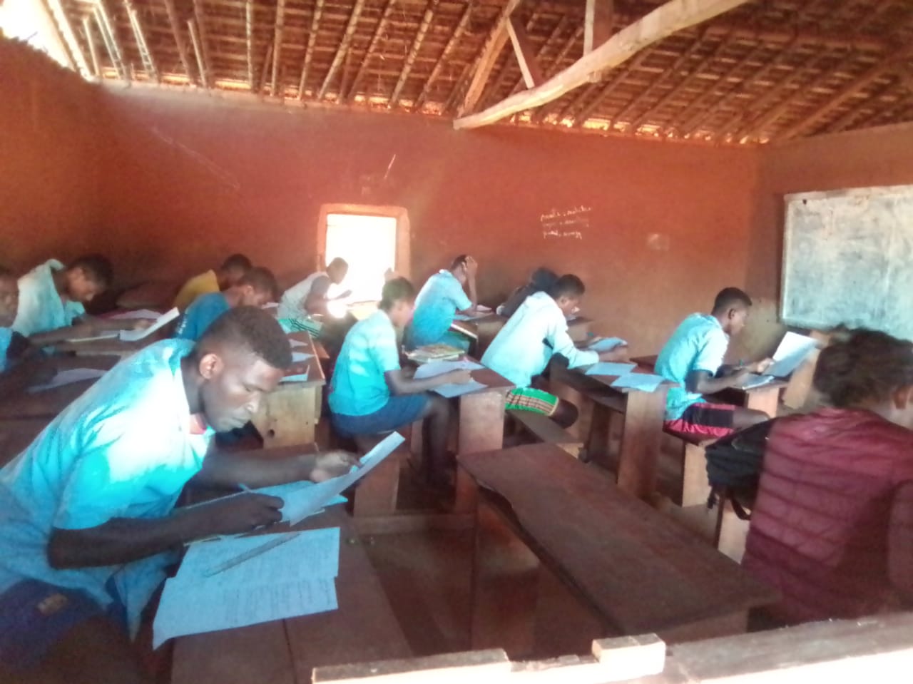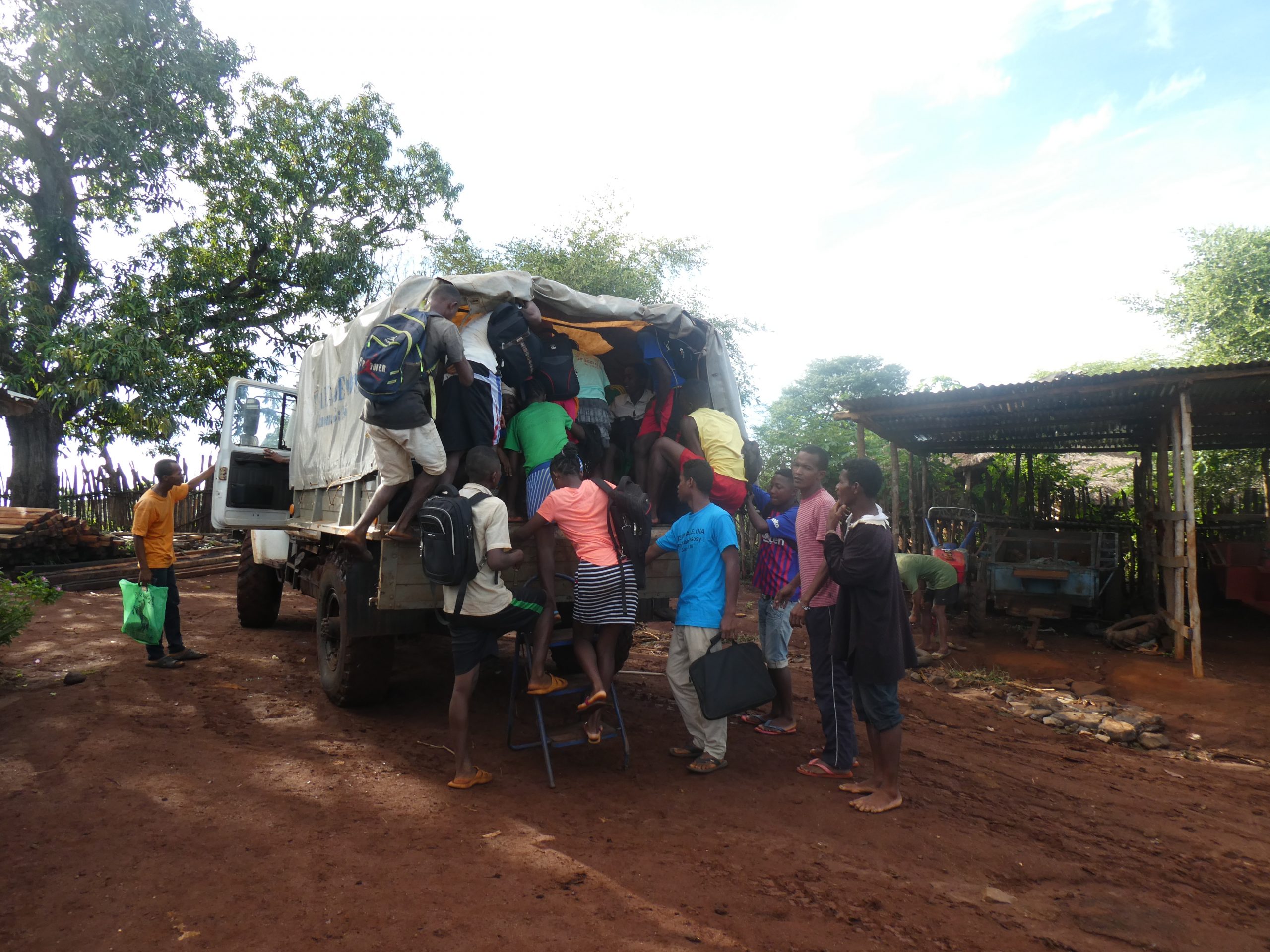 Unsere Oberstufen-Schüler wurden also am Prüfungstag in den SADKO „verladen“, um in Port-Berger die Prüfung abzulegen. Aber – oh Wunder – die Leute dort hatten es sich kurzfristig anders überlegt. Es sollte doch im jeweiligen Schulstandort geprüft werden und nur die Lehrer wurden an dem Tag benötigt, um die Unterlagen abzuholen…. Also – wieder zurück nach Ambo. Es wurde dann ein neuer Termin ausgemacht und die Oberstufen-Schüler haben in den Klassenzimmern der Missionsschule Ambohitsara ihre Prüfung geschrieben.