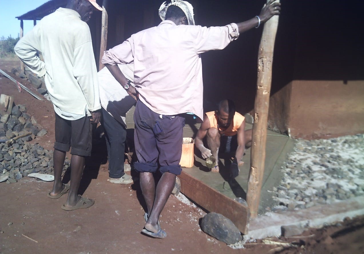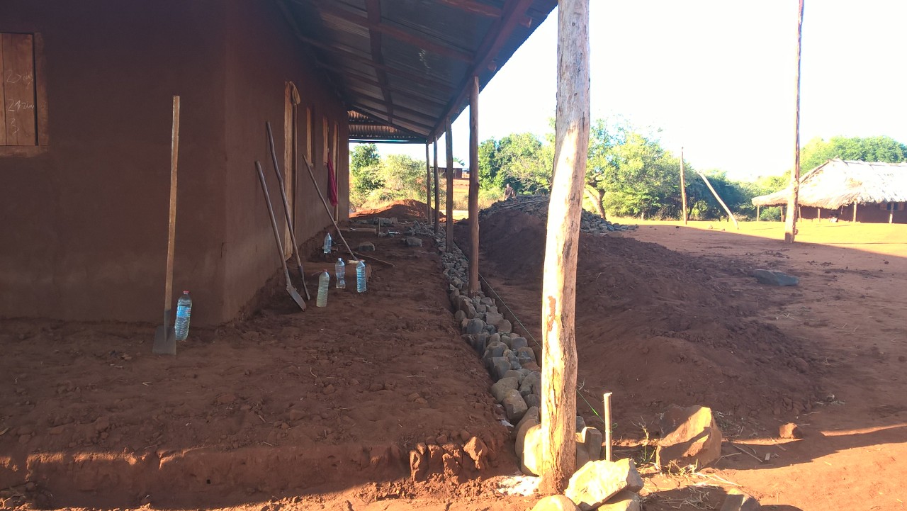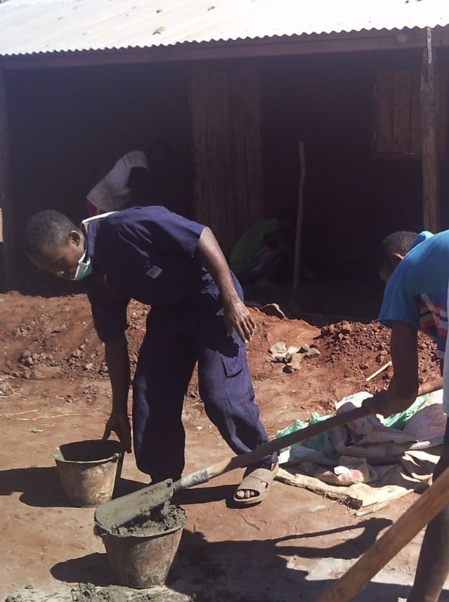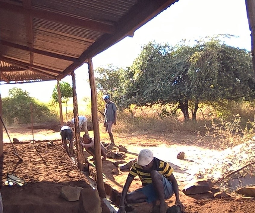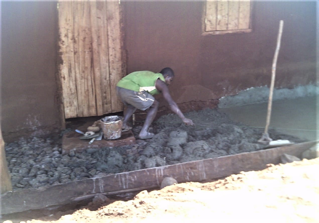 Da alle Veranstaltungen abgesagt wurden, hat auch z.B. unser Alpha-Team Zeit zur Verfügung gehabt. Sie wurden dann im Bauhof, u.a. zum Betonieren der Veranda eines der Schulgebäude, eingesetzt. Die Gebäude haben zwar alle Überdachungen rund herum, aber da der Untergrund aus gestampfte Erde besteht, stehen die Schüler wenn es regnet trotzdem im Matsch. Wenn die Verandas einen Beton-Fußboden haben, dann können sie dort sogar bei Regen sitzen, spielen, lesen usw. Auch haben noch nicht alle Schulzimmer einen Betonboden – das wird jetzt auch gerade gemacht. So etwas ist eine mühsame Angelegenheit – da habe ich auch schon mitgearbeitet, als ich in Madagaskar war – das geht so: