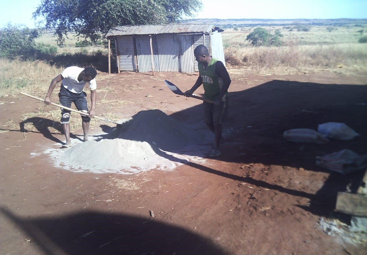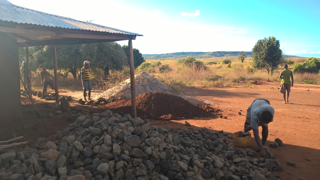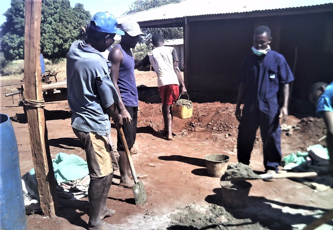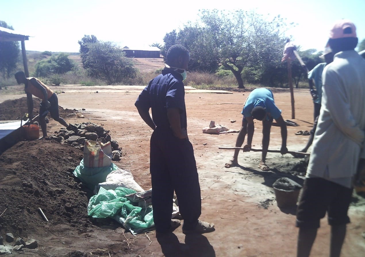 Da alle Veranstaltungen abgesagt wurden, hat auch z.B. unser Alpha-Team Zeit zur Verfügung gehabt. Sie wurden dann im Bauhof, u.a. zum Betonieren der Veranda eines der Schulgebäude, eingesetzt. Die Gebäude haben zwar alle Überdachungen rund herum, aber da der Untergrund aus gestampfte Erde besteht, stehen die Schüler wenn es regnet trotzdem im Matsch. Wenn die Verandas einen Beton-Fußboden haben, dann können sie dort sogar bei Regen sitzen, spielen, lesen usw. Auch haben noch nicht alle Schulzimmer einen Betonboden – das wird jetzt auch gerade gemacht. So etwas ist eine mühsame Angelegenheit – da habe ich auch schon mitgearbeitet, als ich in Madagaskar war – das geht so: