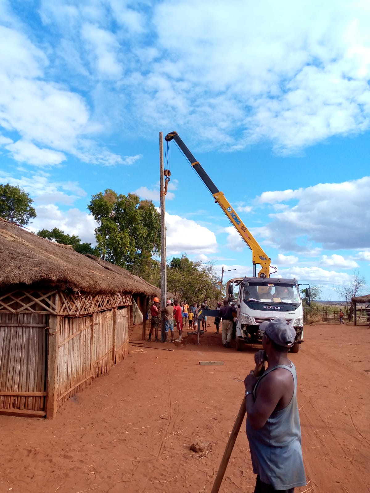 Anatole hat Strom-Masten aus Beton gekauft und vom staatlichen Strom-Provider in Port-Berger aufstellen lassen. Damit kann man Strom verteilen, was wir später vor allem im neuen Krankenhaus nutzen werden. Zusätzlich hat er noch Solar-Lampen auf vielen dieser Masten angebracht, vor allem damit die Mitarbeiter des Krankenhauses später auch nachts sicher zur Arbeit kommen können. Wir haben es vor, nicht nur in unseren Projekten, sondern auch im Dorf Ambohitsara für Beleuchtung zu sorgen. Diese Betonpfosten (170 Euro) sind zwar viel teurer als die üblichen aus Metall (50 Euro). Aber sie können nicht geklaut werden. Der Staat hat schon versucht, in Dörfern solche Beleuchtungen zu installieren, natürlich Metallpfosten. Aber die werden oft abgesägt und gestohlen….Deswegen wollen wir in unseren Projekten, wenn möglich, Betonpfosten anschaffen. Die wiegen mehrere 100kg und können nicht weggeschafft werden…