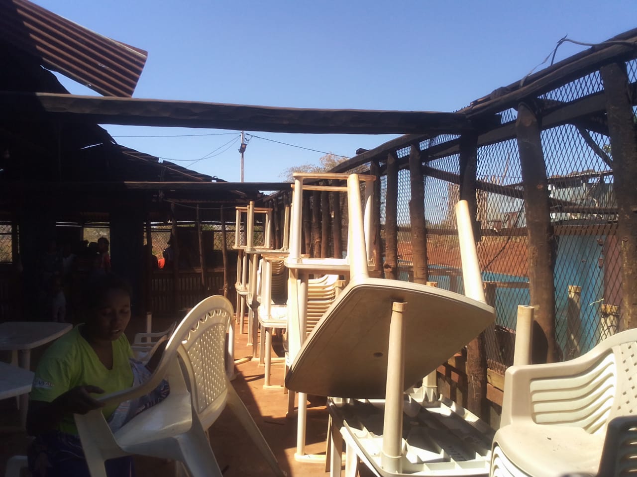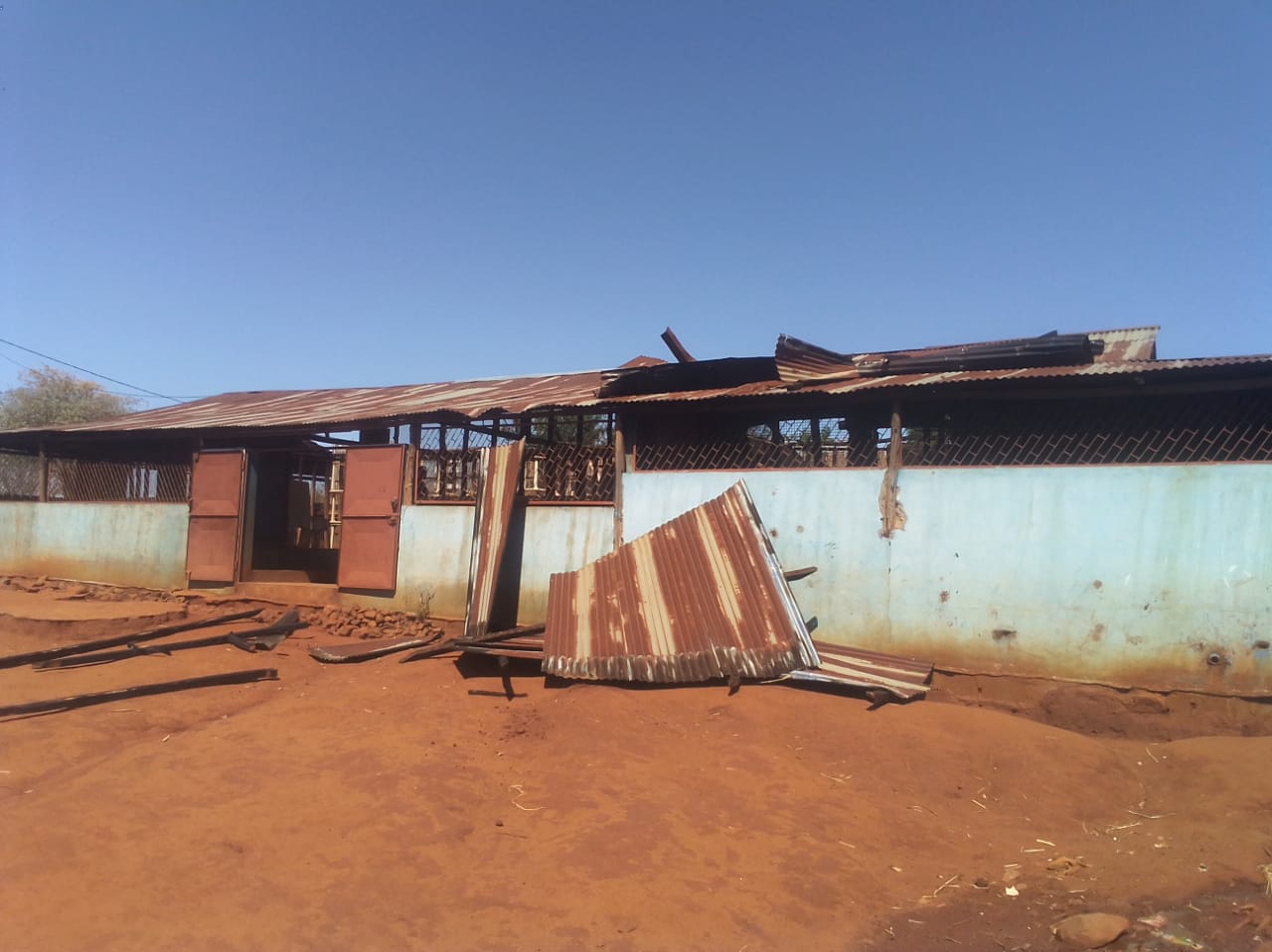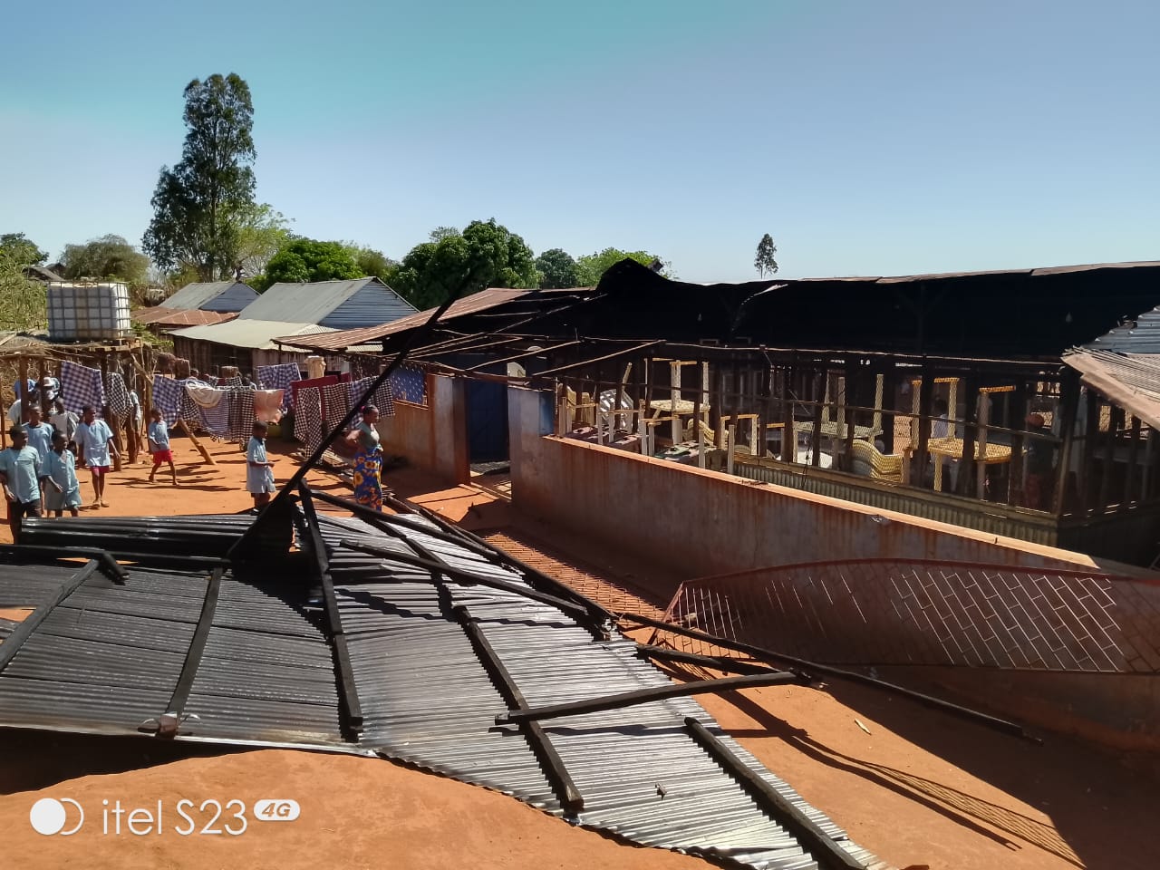 Am 16.10.2025 wurde die Schulkantine zerstört. Aber mit einer Gewalt, die unglaublich ist. Das Dach wurde abgedeckt und die Bleche herumgeschleudert. Sogar das Gitter, das die Veranda umgab, ist zerschmettert worden… Gott hat aber alle beschützt – die Kinder befanden sich nach dem Essen in einem anderen Gebäude, um Hausaufgaben zu machen. Nur einige Mitarbeiter waren noch drin – aber keinem ist etwas passiert. Hätten sie nicht vor dem Essen gebetet, dann wären sie (wenn man den „Zeitstrahl“ betrachtet) schon wieder draußen gewesen und da flogen ja zu der Zeit die Bleche durch die Luft!