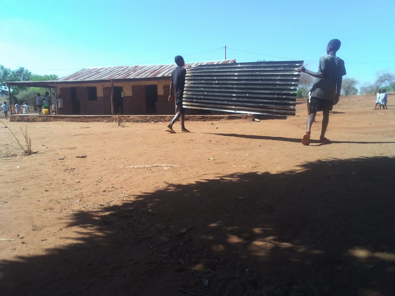 Auf alle Fälle werden wir jetzt diese Sache in Angriff nehmen. Wir wollen alle Dachbefestigungen sturmsicher machen – das würde uns bei den „normalen Gebäuden“ jeweils 500 Euro kosten – bei den 3 großen (Grundschulgebäude der ersten Klasse, Schulkantine und Nähwerkstatt) je 900 Euro. Einmalig müssen wir am Anfang noch ca. 2000 Euro ausgeben, um die Werkzeuge zu beschaffen, die wir für diese Aktion brauchen. Deswegen konnten wir das bis jetzt nicht in Angriff nehmen – es gab ja auch keinen unmittelbaren Anlass dafür….