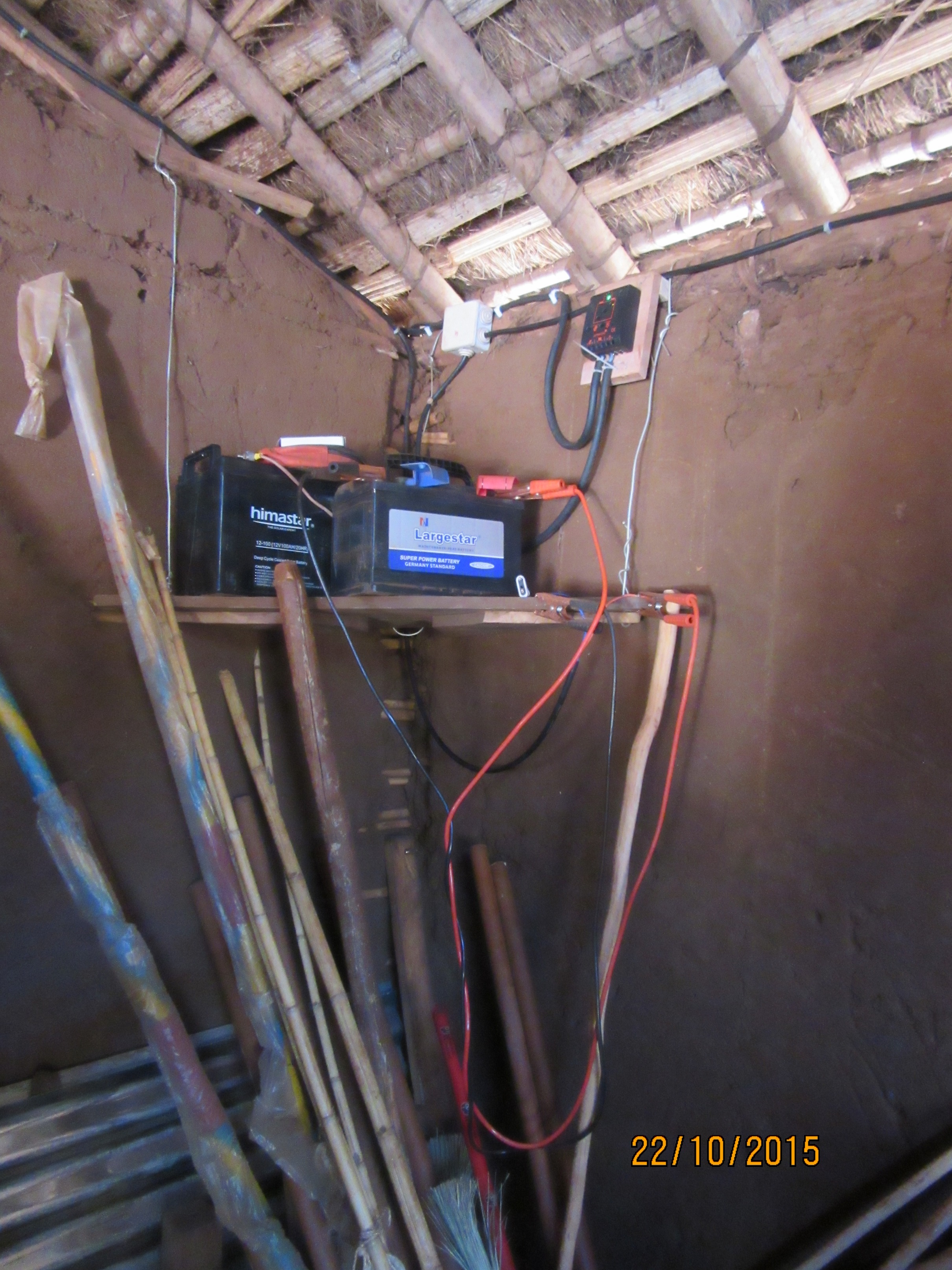 Erstmalig werden wir auch eine 13. Klasse haben, die das Abitur macht. Diese Klasse ist hochmotiviert. Bis spät in die Nacht wird gelernt. Dies ist möglich, da sie die Schulräume auch abends benutzen können. In den Hütten ihrer Eltern ist meistens kein elektrisches Licht und kein Platz, wo sie ungestört lernen können. Dank einer mobilen Stromversorgung haben sie jetzt auch Licht in dem Schul-Lernzimmer. Das geht folgendermaßen: René aus der Schweiz hat letztes Jahr eine ziemlich geniale Elektrifizierungslösung entwickelt, um Räume bei Bedarf mit Strom aus der Batterie zu versorgen. Dabei werden 3 Gebäude mit Solarpannelen als Auflade Station für zusätzliche, mobile Akkus benutzt. Diese Akkus plus Lampen und Kabel können von den Schülern am frühen Abend abgeholt, und dann, wenn sie fertig sind, wieder ins Basiscamp zurückgebracht werden.