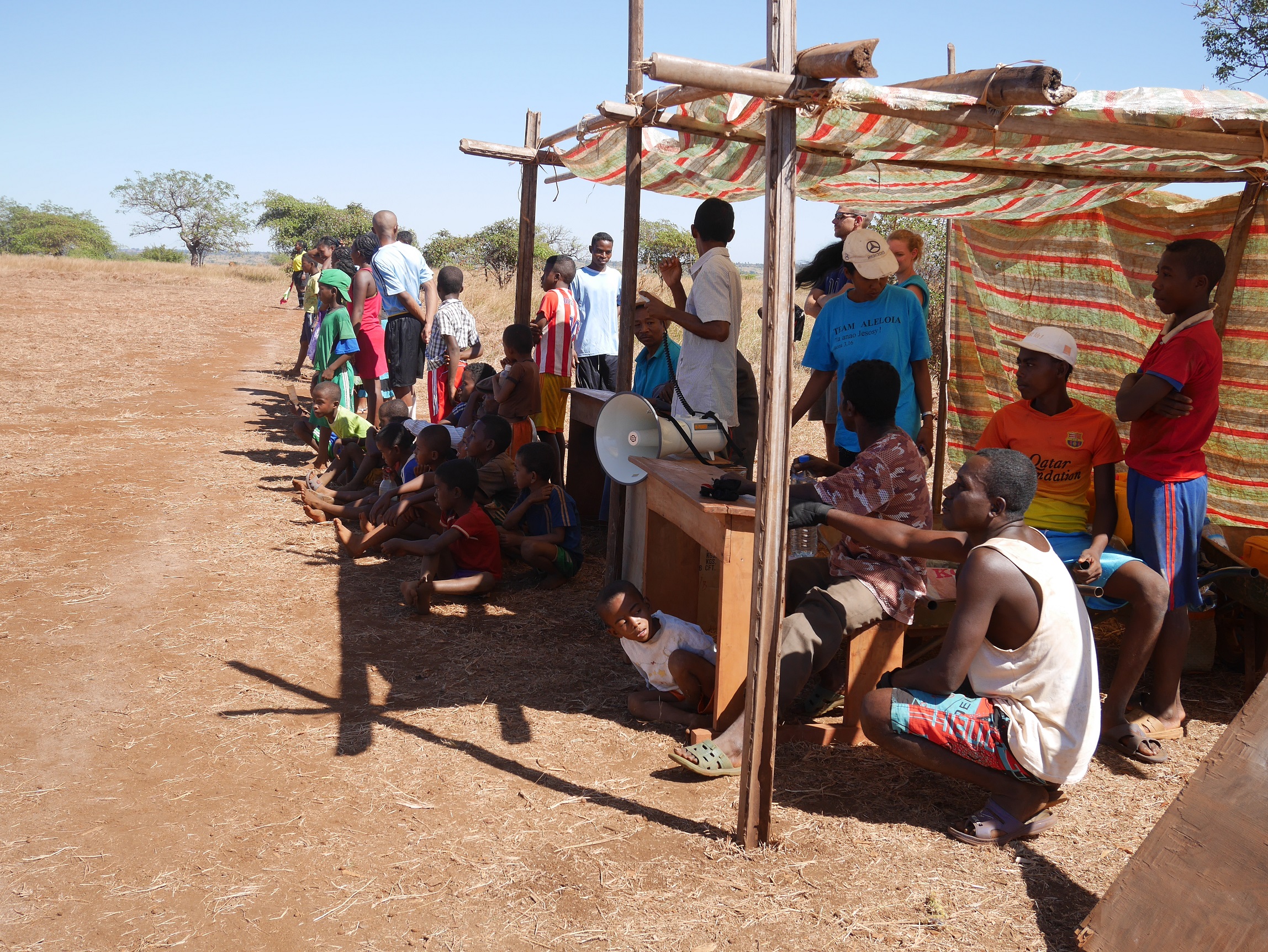 Alle Fußballmannschaften- und -Clubs der näheren Umgebung sind eingeladen, an einem großen Turnier teilzunehmen. Die Vorausscheidungen (und das ist neu) werden in den Dörfern stattfinden. Erst ab dem Achtelfinale wird das Turnier in Ambohitsara stattfinden. Wie gehabt mit Andacht, Musik und Essen. Diesmal wird auch (zur Förderung der Nachhaltigkeit – die Mannschaften sollen keine Bettel-Haltung einnehmen) ein kleiner Startbetrag (ca. 15 Cent pro Spieler) erhoben. Als Preise wurden dieses Jahr keine Geldbeträge mehr ausgesetzt, weil die früher oft in Alkohol umgesetzt wurden, sondern Naturalien. Die Jugendlichen sollen durch diese Sachleistungen angeregt werden, ihren Lebensstandard jetzt schon zu verbessern. Deswegen: 1. Preis eine fette (weibliche) Ziege zur Zucht, 2. Preis: 1 Hahn und 1 Henne zum Start einer Hühnerzucht, 3. Preis: Saatgut für Gemüse. Die Turniere starten ab Mitte Juni und ich bin selber auf die Gewinner gespannt. Diese Events geben auch noch 2 sehr bedürftigen Familien die Gelegenheit, etwas Geld zu verdienen: Sie verkaufen Getränke und selbst gemachte Snacks an Ständen neben dem Fußballfeld.
