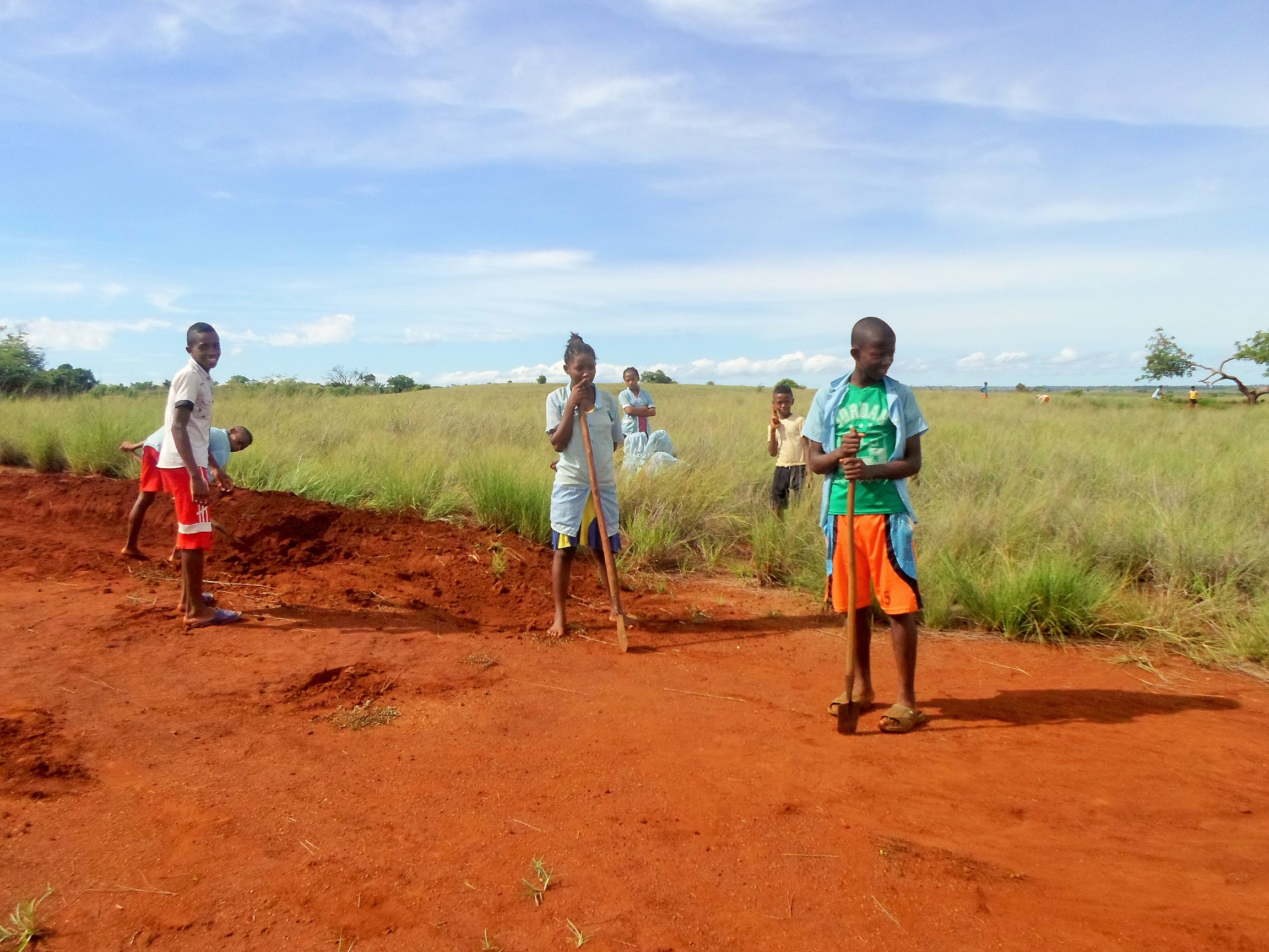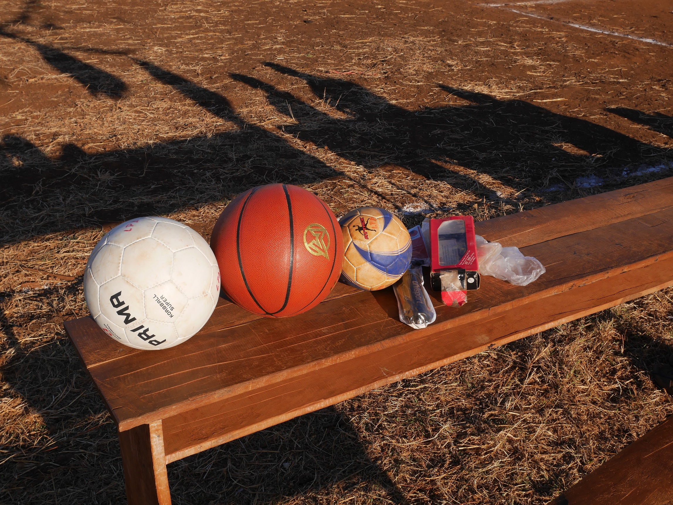 Zu diesem Zweck werden jetzt die Sportplätze auf Vordermann gebracht. Das Übliche nach der Regenzeit eben: Befreien von Unkraut, Einebnen der Fläche usw.