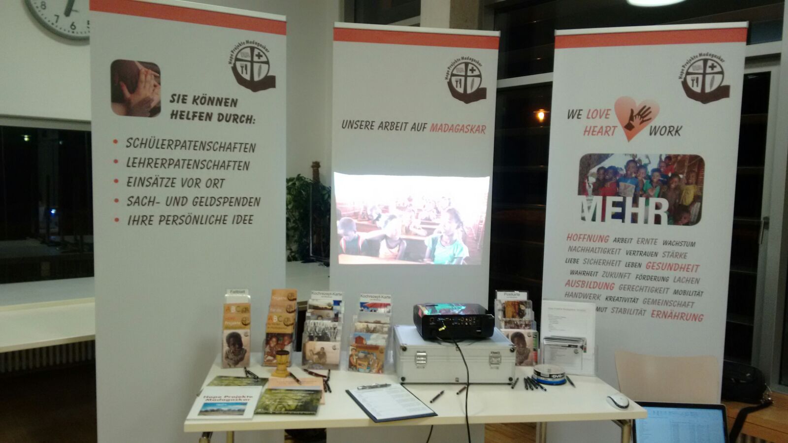 Wir haben uns sehr über die Einladung gefreut, in ihrer Gemeinde in Worb ein sog. „Madagaskar-Event“ zu veranstalten. Dies beginnt i.d.R. mit einem Gottesdienst, anschließend gibt es ein madagassisches Essen, und danach Vorträge über den aktuellen Stand der Projekte, Bilder, Filme…. Nach der Veranstaltung ist meist noch Zeit für Gespräch und man kann sich Kunstobjekte aus Madagaskar ansehen und auch gegen eine Spende mit nach Hause nehmen.