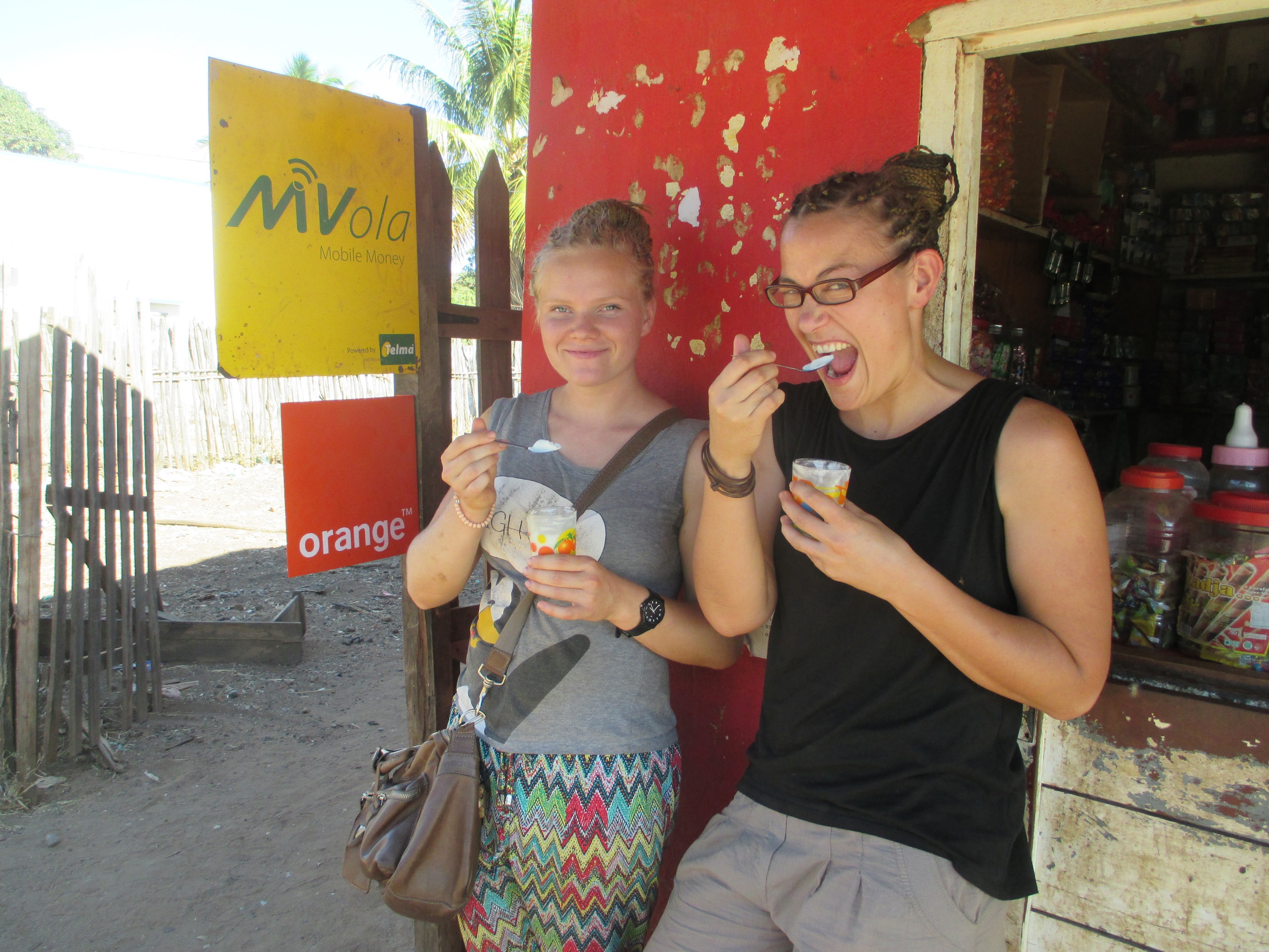 Anschließend sind sie Joghurt-Essen gegangen. In der Stadt gibt es so eine kleine Bude mit einem Kühlschrank drin. Die verkaufen dort selbstgemachten, superleckeren Joghurt im Glas. Wenn ich in Port-Berger bin, gehe ich jedes Mal hin. Auch die Ausländer, die von Ambohitsara wegen Einkäufen o.ä. herkommen, frequentieren diese Bude jedes Mal….