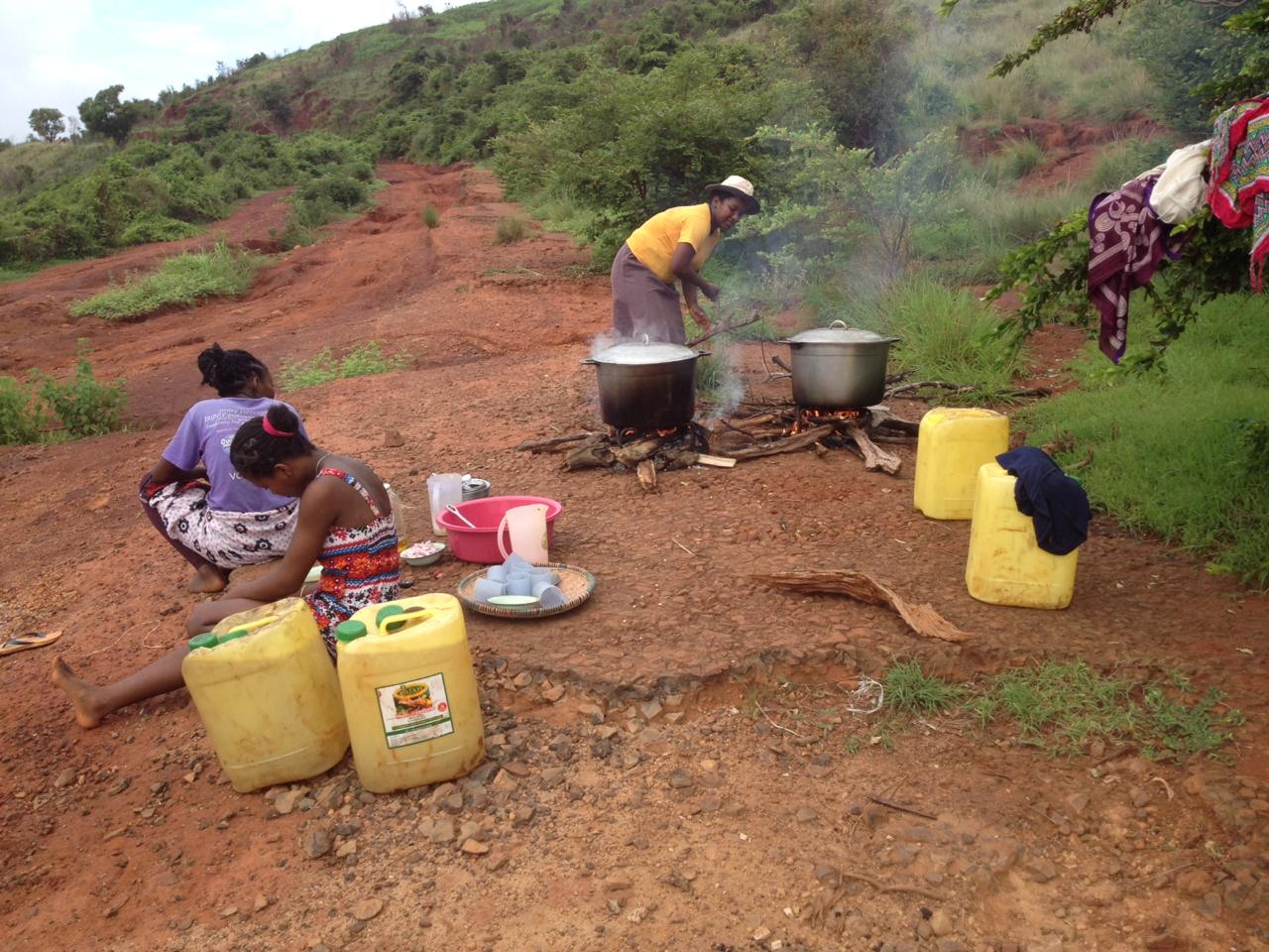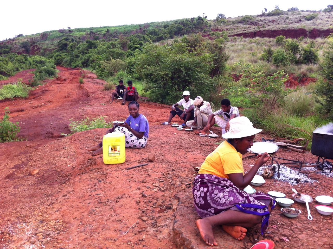 In der Mittagspause wird gekocht (Reis natürlich) und siehe da, es kommt noch eine leckere Fleischbeilage daher…