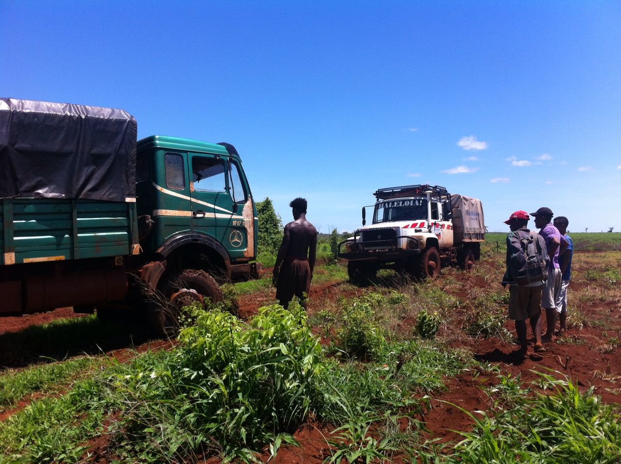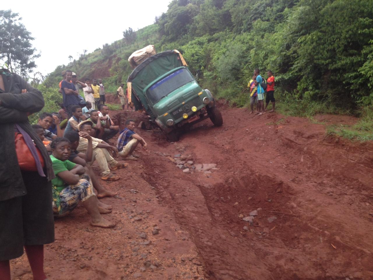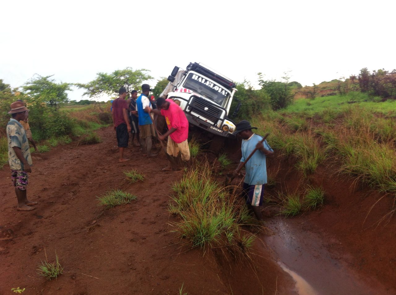 Die Baufirma Somima, die gerade unser Labor baut, ist mit ihrem Lastwagen auch mitten in die Regenzeit hineingerutscht. Buchstäblich.