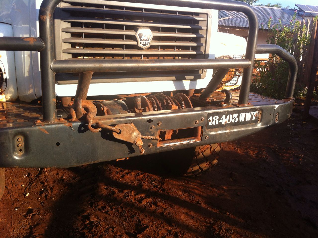 Ihr Lastern, ein 7 Tonner, war voll mit Steinen beladen, und ist ca. 1 m tief im Schlamm steckengeblieben. Als der SADKO versuchte ihn (voll beladen!) herauszuziehen, ist das letzte Stück der Seilwinde gerissen. Unsere Leute waren wohl noch von den Erfolgen des SADKO „verwöhnt“ und haben es einfach in beladendem Zustand probiert. Dann hieß es: Seilwinde reparieren, Laster entladen, ausgraben und rückwärts herausziehen. Was dann auch prima geklappt hat….