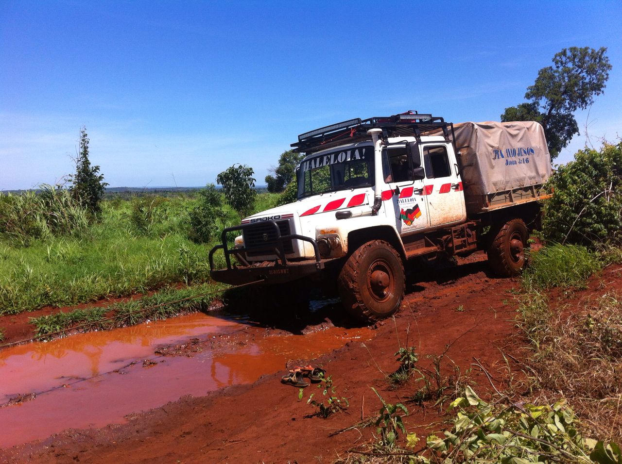 Für den SADKO-Geländewagen ist es allerdings die erste Regenzeit-Saison. Eine echte Herausforderung für unsere beiden Fahrer Johnny und Ruphin.