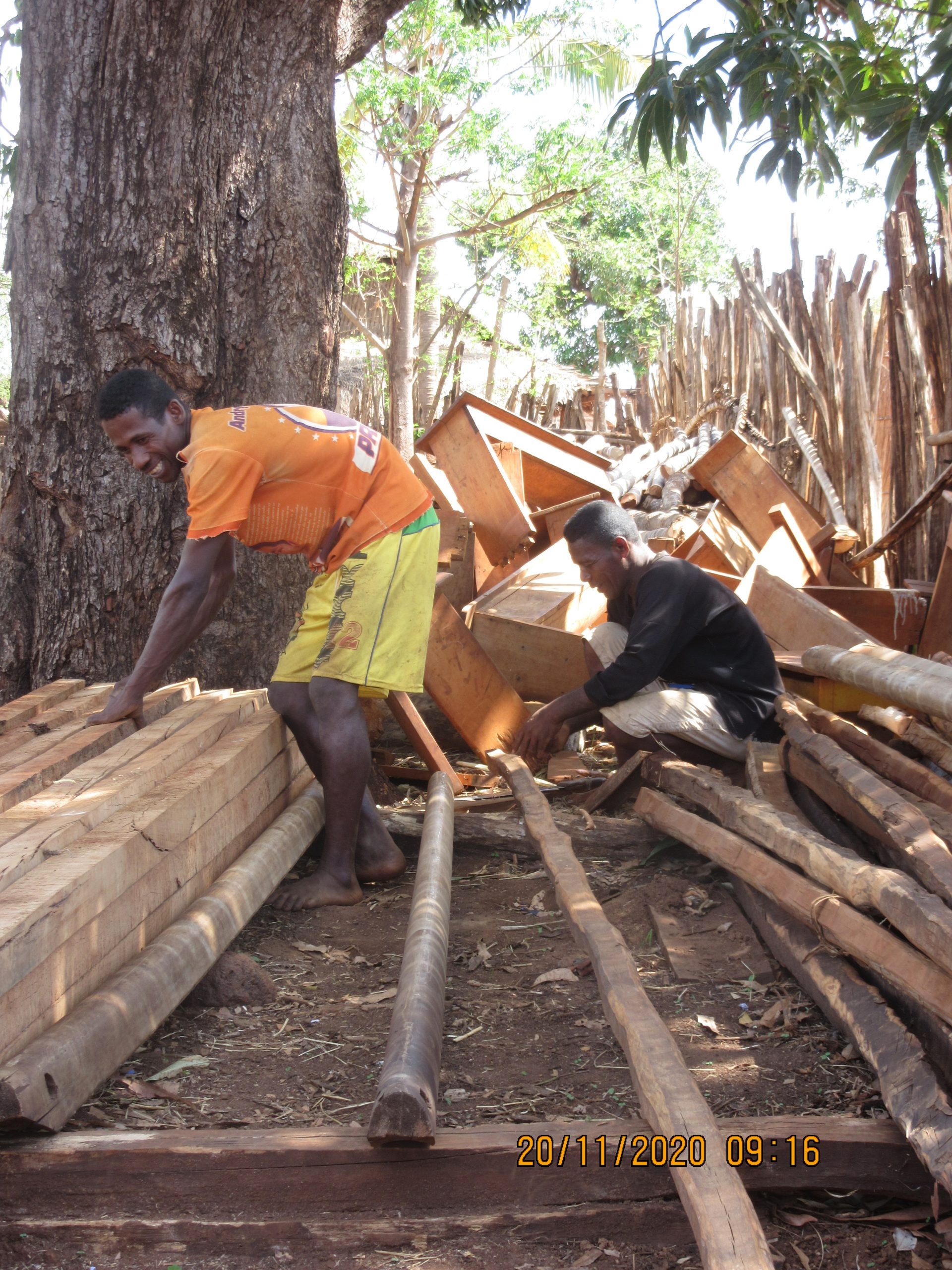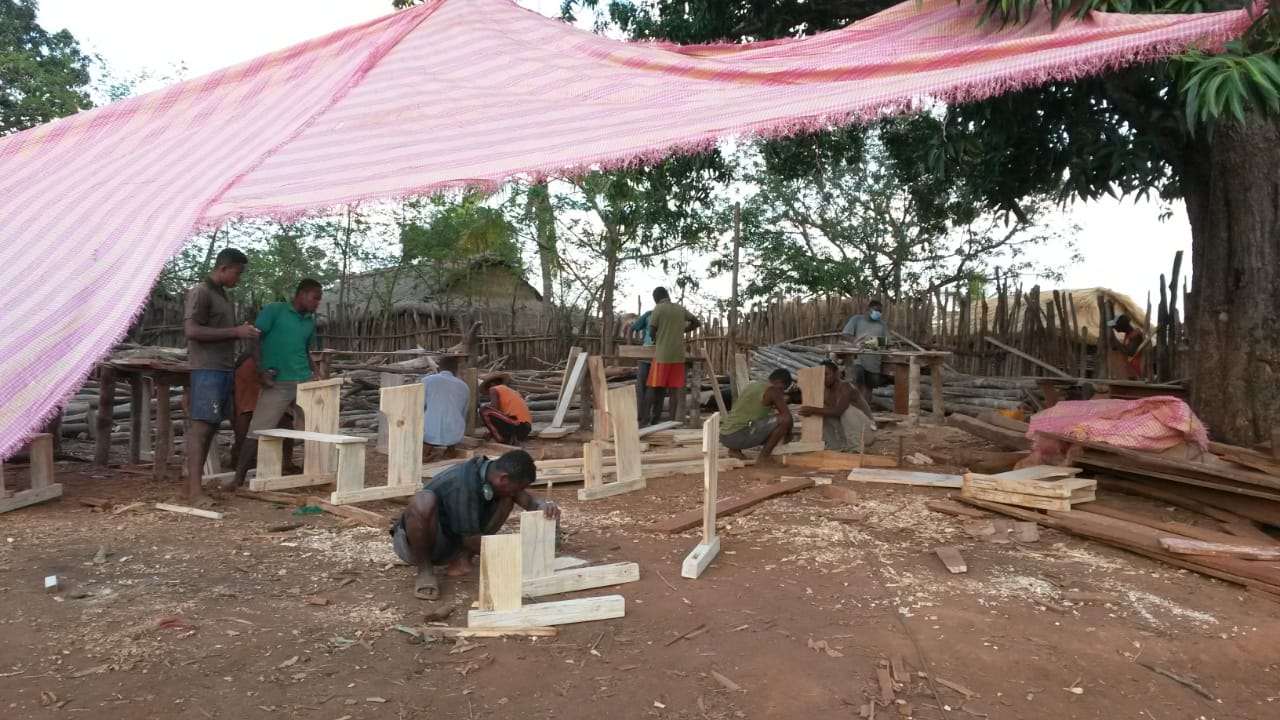 Unsere Leute kommen nicht mehr nach mit dem Bänke produzieren. Seit August 2020 sind sie schon zu Gange. Dazukaufen wäre eine Möglichkeit, aber einfach so kaufen kann man die nicht auf dem Land. Man kann sie zwar beim Tischler in Port-Berger bestellen, aber der macht sie wenn er eben mal Zeit hat.