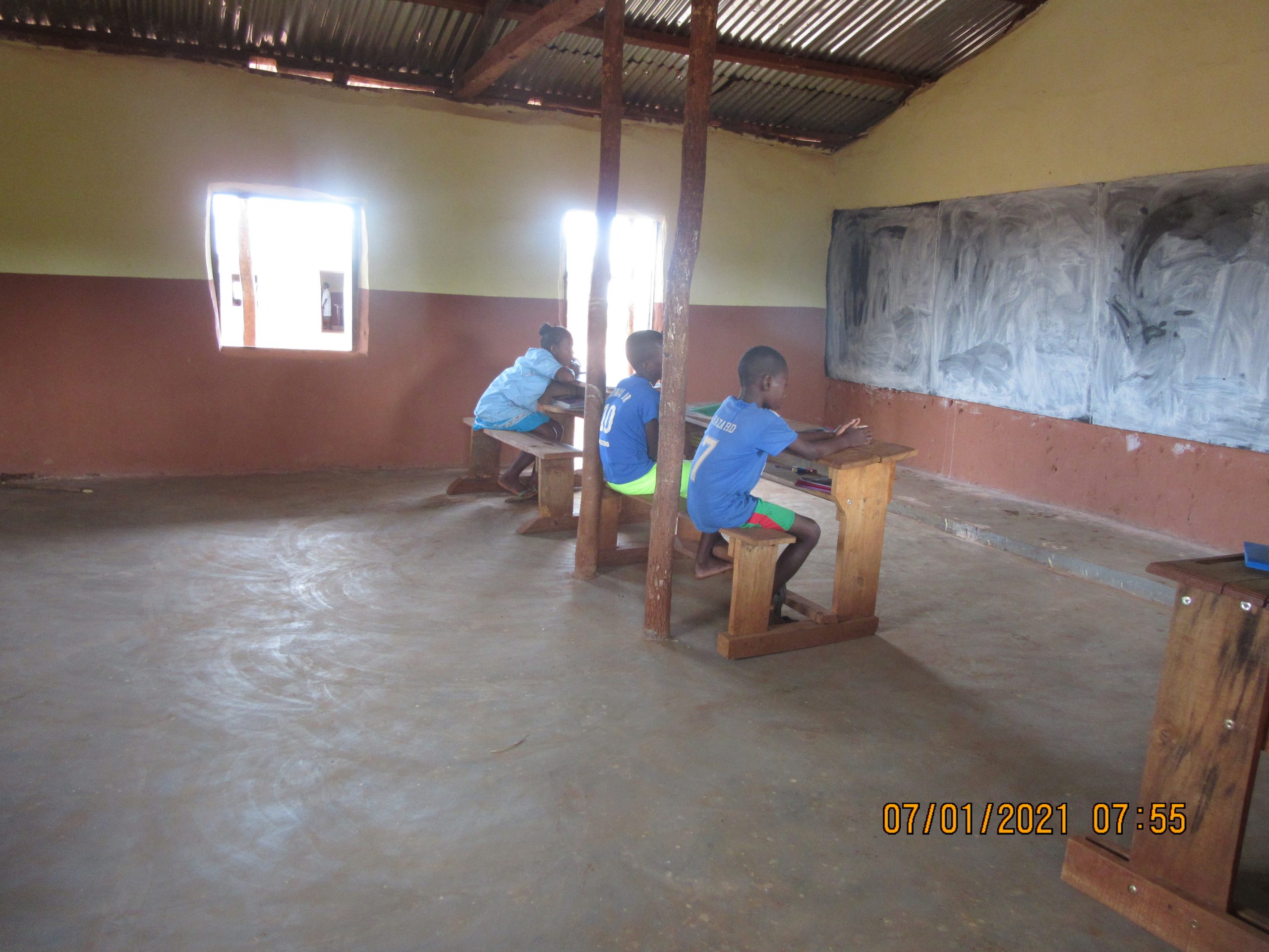 Unser Problem sind momentan die Bänke. Vor allem in der Vorschule und 1. Klasse müssen viele Kinder auf dem Boden sitzen. Manchmal sitzen 4 Kinder auf 1 Bank für ursprünglich 2 Personen.