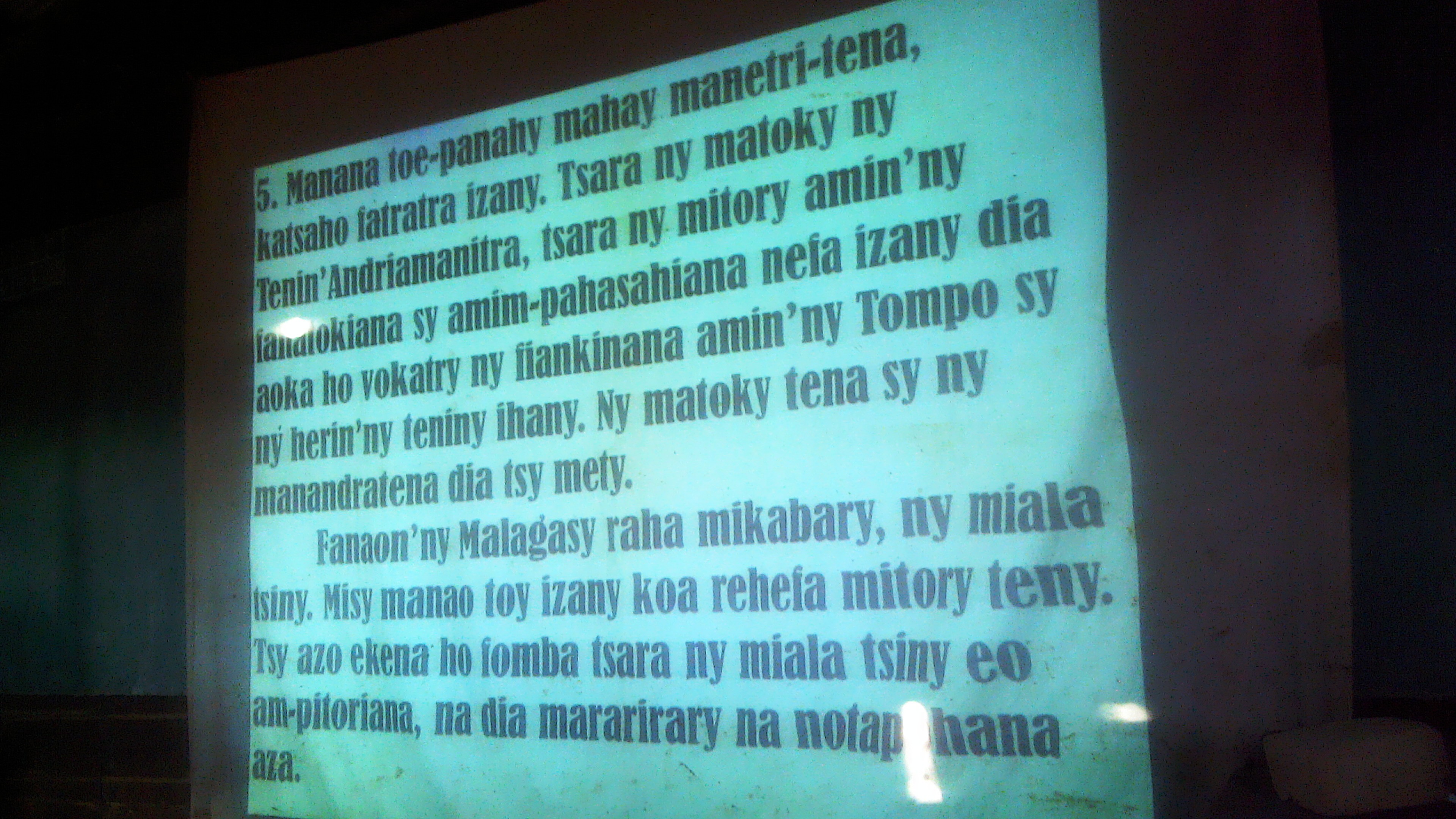 Dieses Bild ist für mich nicht erklärbar – nur auf diesem Bild, beim Marsch durch das Dorf Andranomena „leuchten“ die Kleider der Bibelschüler, wie bei Mose, nachdem er mit Gott gesprochen hat. Mag sein, dass es eine optische Täuschung, Überbelichtung oder was auch immer ist. Fakt ist aber: In der unsichtbaren Welt sieht es genauso aus – Gottes Kinder „leuchten“, wenn sie in die Dunkelheit gehen und den Armen der Ärmsten das Licht des Evangeliums, Bildung und praktische Hilfe bringen….
