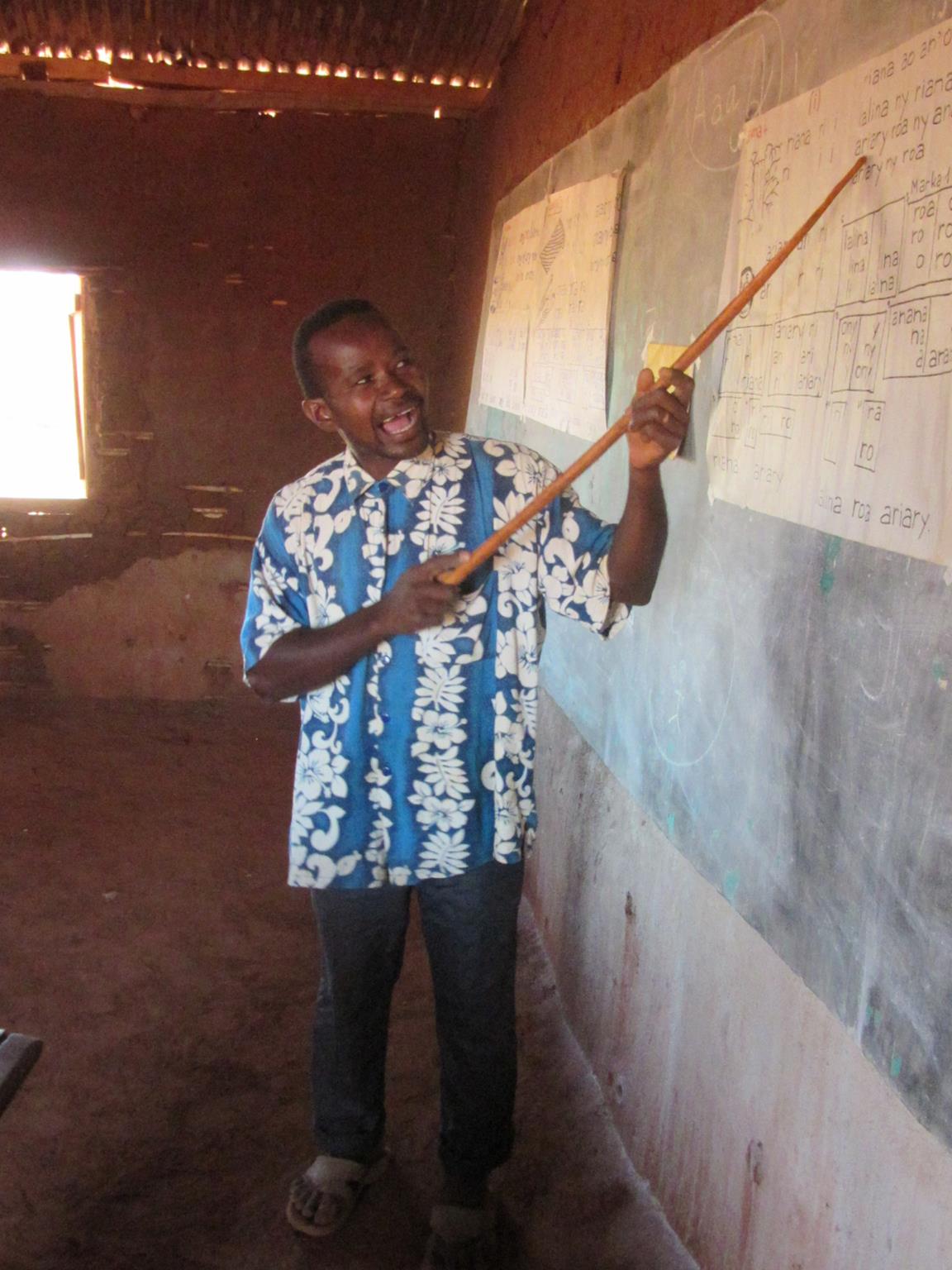 Pastor Clement macht seinen Master in Theologie. Er ist einer unserer treuesten Mitarbeiter. Früher hat er schon jahrelang als lokaler Projektkoordinator in Ambohitsara gearbeitet. Jetzt ist er pünktlich zu jedem Ferienbeginn in Ambo zur Stelle und hält Gottesdienste, besucht die Gemeinden, macht Alphabetisierung und ist sich auch nicht zu schade, um im Bau mitzuhelfen. Ein riesiger Gewinn allein deshalb schon. Außerdem ist er der Projektleiter unseres Alphabetisierungs-Teams.