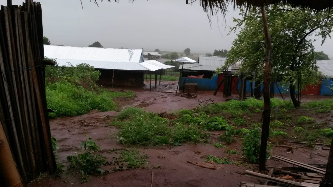 Am Mittwoch, den 20.01.2021 gegen 12.30, hat der Wirbelsturm „Eloise“ Ambohitsara voll erwischt. Einige Tage zuvor gab es schon schwere Regenfälle. Nichts ging mehr – sogar der SADKO steckte im Basiscamp fest! Deswegen wurde die Schule (bis auf die Abschlussklassen) vorsorglich geschlossen. Zu dem Zeitpunkt waren also nur 4 Klassen anwesend – und die saßen gerade in der Schulkantine. Dieses ist, außer dem Labor, das sicherste Gebäude der Hope-Projekte-Madagaskar, wegen der vorgeschalteten Bäume und der Vegetation.