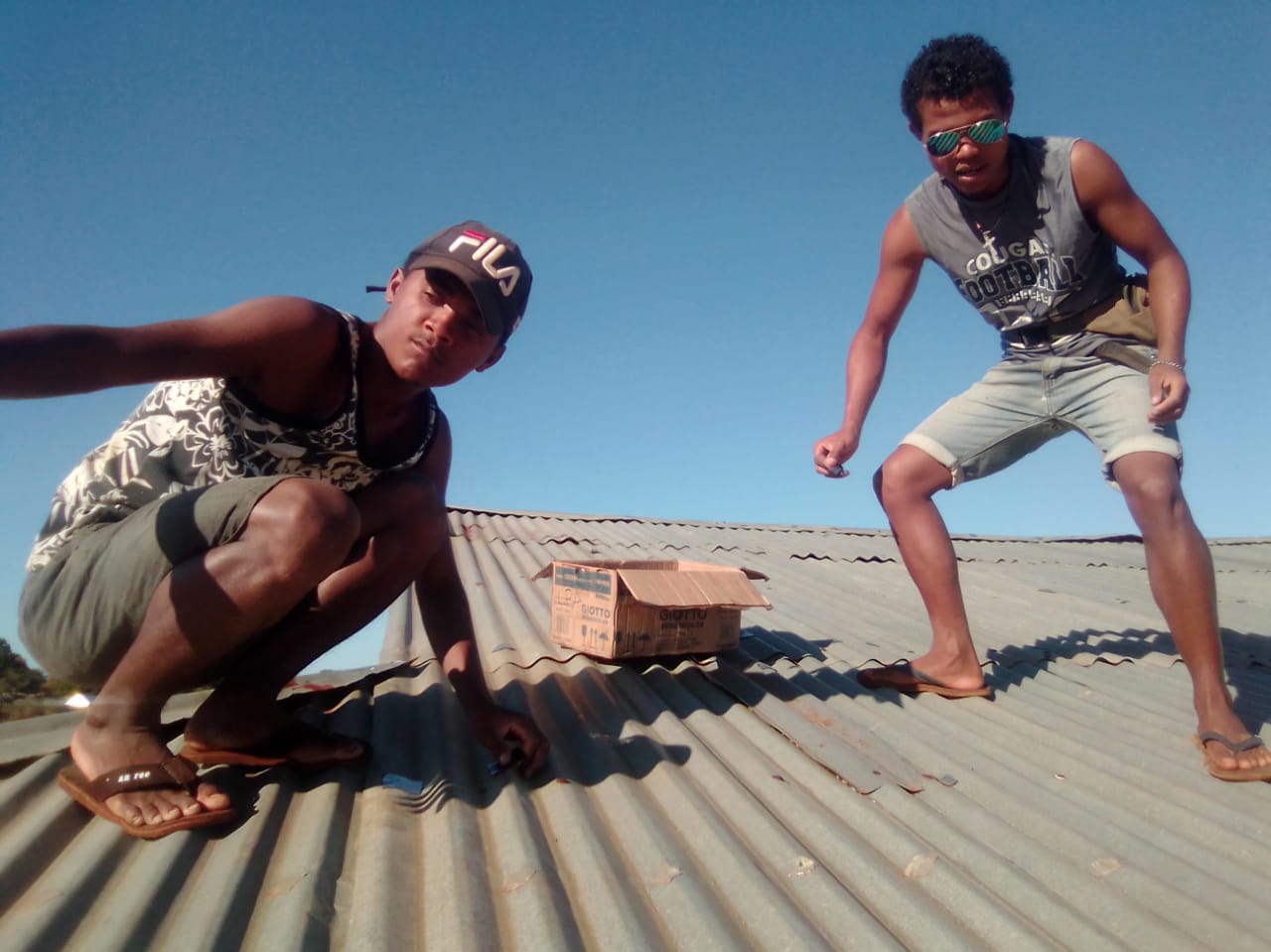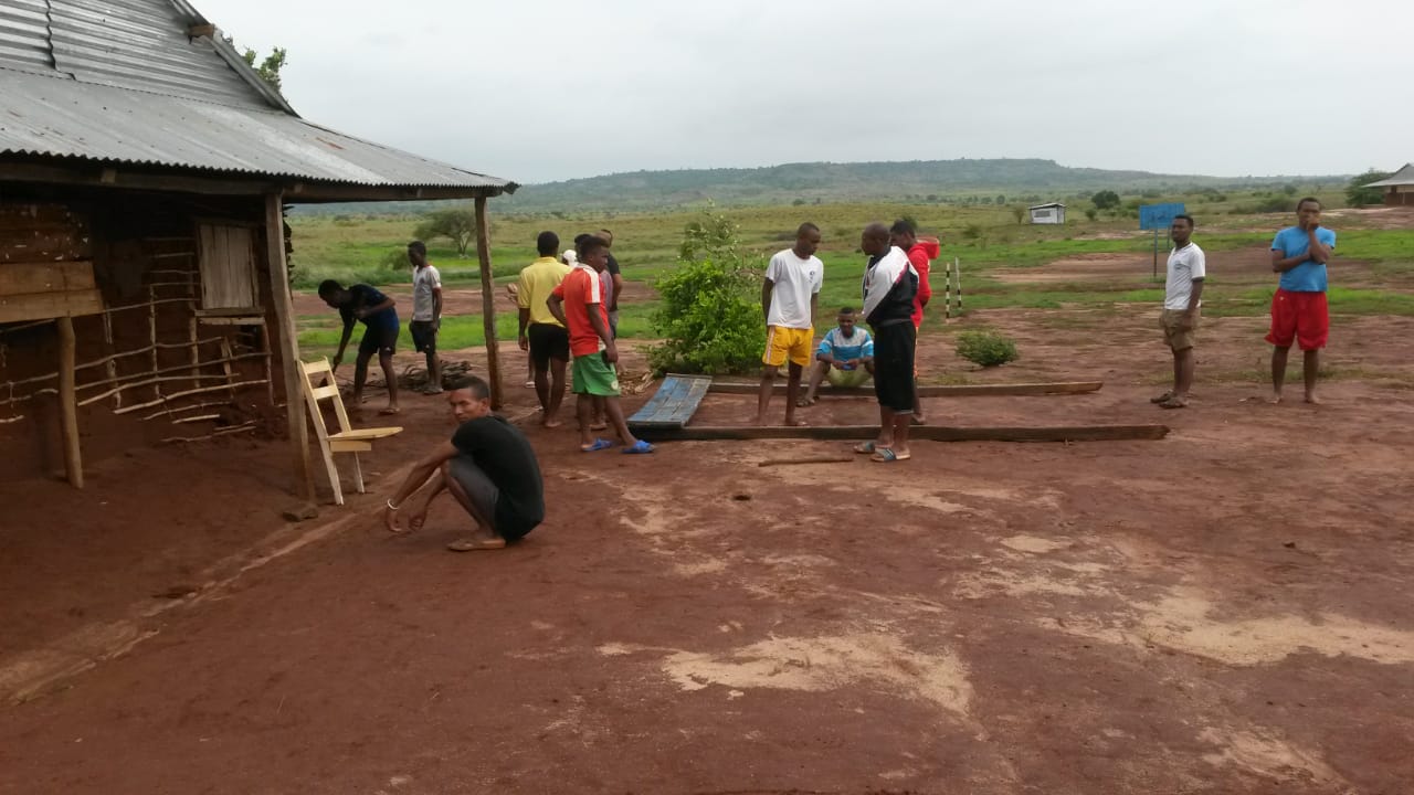 Die Dächer mittels Haken und Schrauben zu fixieren. So war das auch in der Kaserne in Majunga, wo Benjamin aufgewachsen ist. Und Majunga ist ein Gebiet, wo es sehr häufig Wirbelstürme gibt.