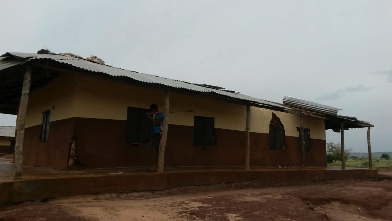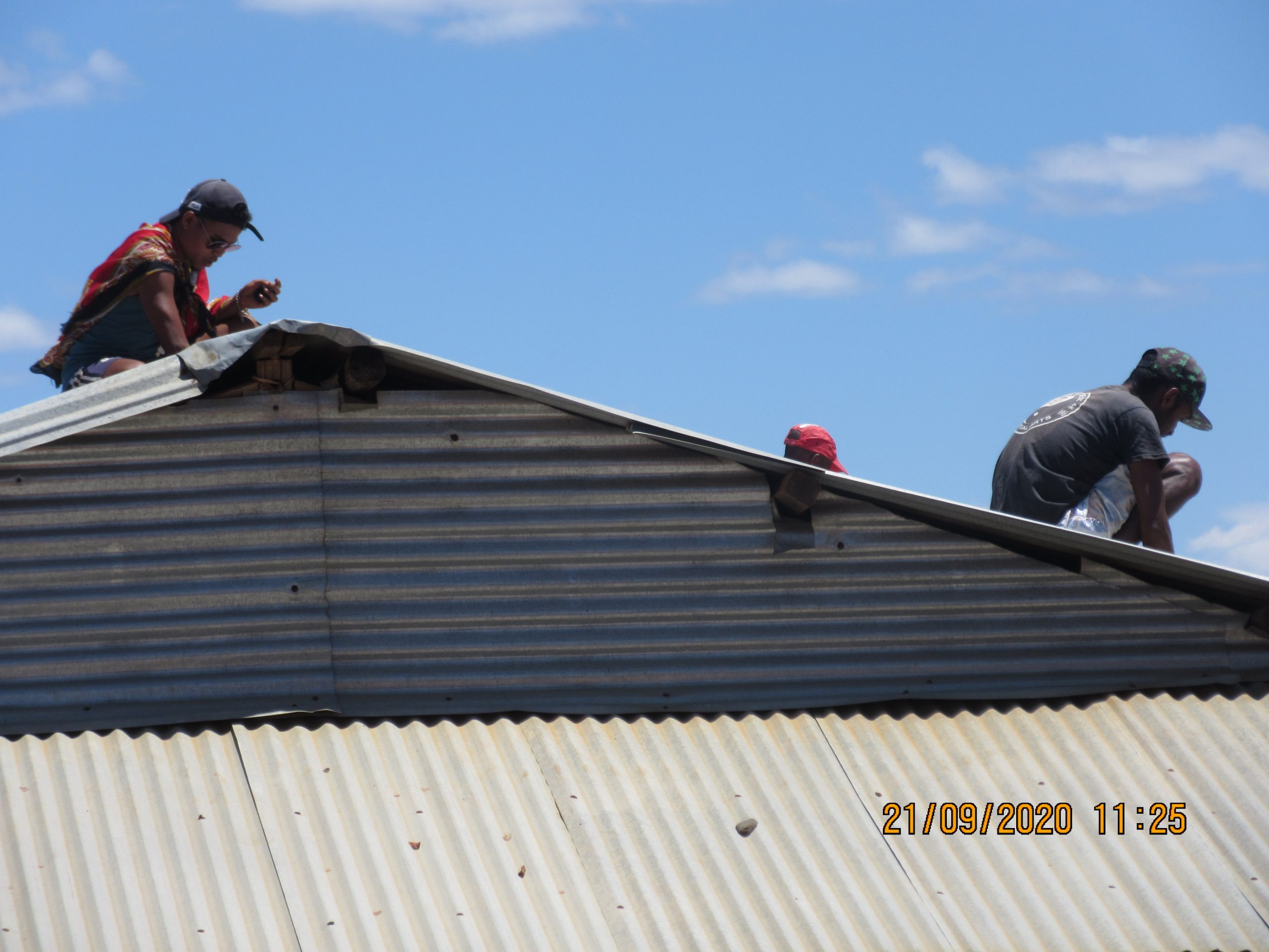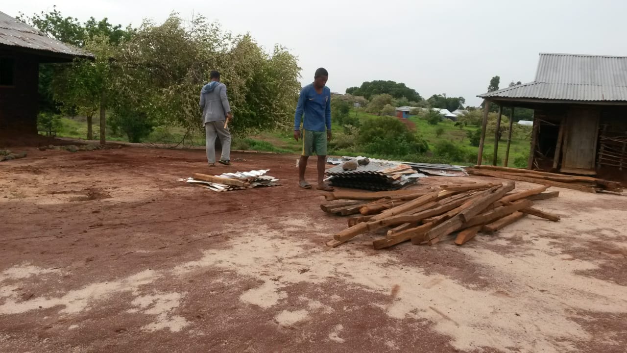 Die Gebäude der Realschule (College) waren am schlimmsten betroffen. Bei G2 sind 4 Dach-Bleche „weggeflogen“. G4 hat quasi Totalschaden, 2/3 der Bleche sind weggeflogen. Der Direktor der Grundschule, Robert, hat auf die Schnelle danach noch ein Team zusammengestellt und ist „Bleche aufsammeln“ gegangen.