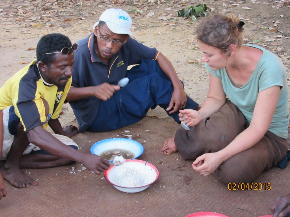 - Debora und die Mitarbeiter des Außenteams beim Essen