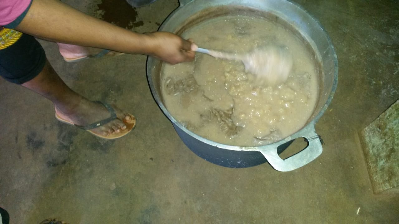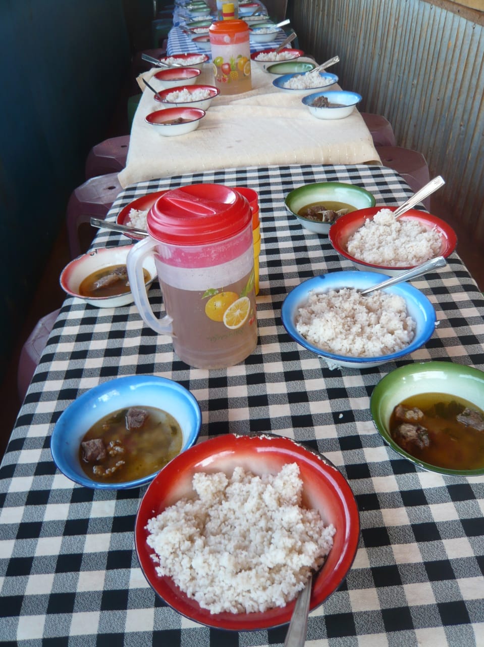 In der Schulkantine wird mit dem „Menü“ immer gewechselt. Leider hatten wir beim Maniok im Ackerbau eine Missernte. Die Reisernte war dafür die beste Ernte, die wir jemals erzielen konnten. Aber er reicht wie immer nicht aus für so viele Leute. Wir müssen zukaufen, und das ist teuer. Wir können auch nicht jetzt, kurz nach der Erntezeit eine Menge davon kaufen (da ist der Reis billiger), wegen Lagerungsproblemen.