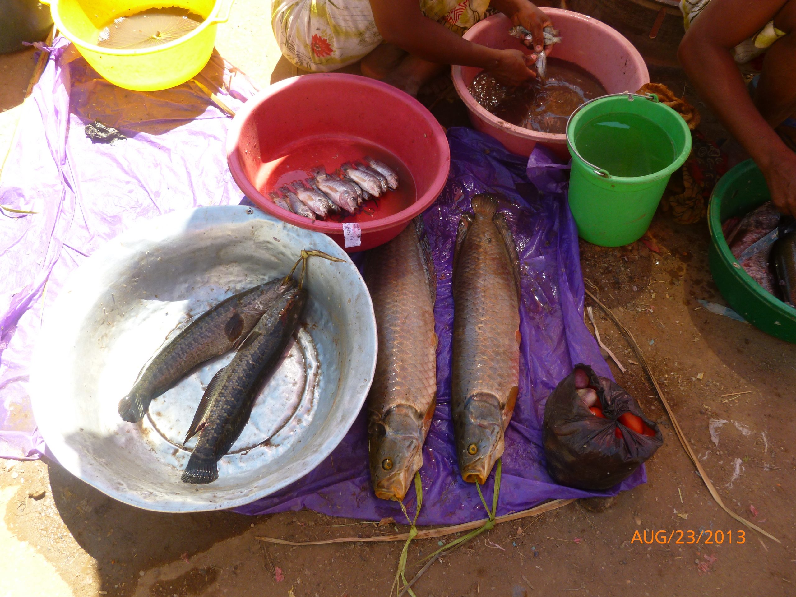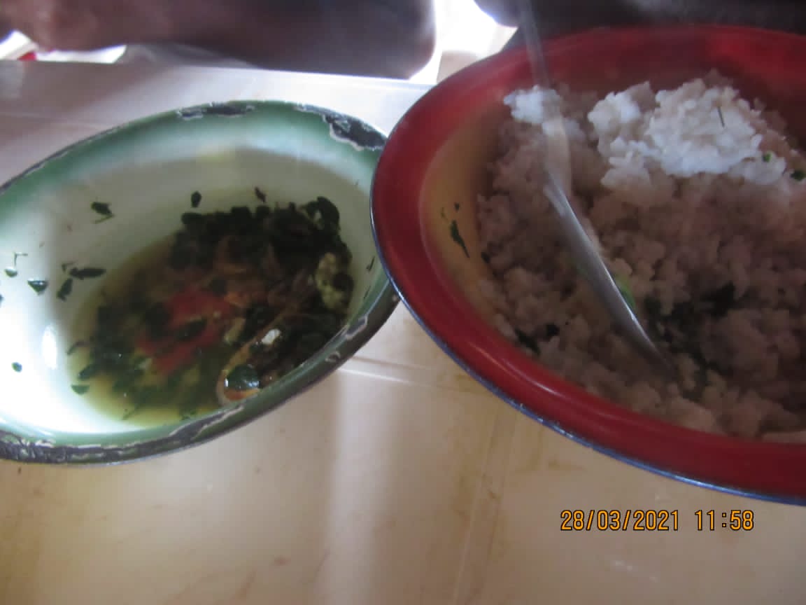 Als Beilage verwenden wir nach wie vor Fleisch und Fisch. Aber auch das ist ziemlich teuer geworden. Deswegen wird es mit Gemüse, „Vary-lava“ (getrocknete Minifische) und getrockneten Minigarnelen gemischt.