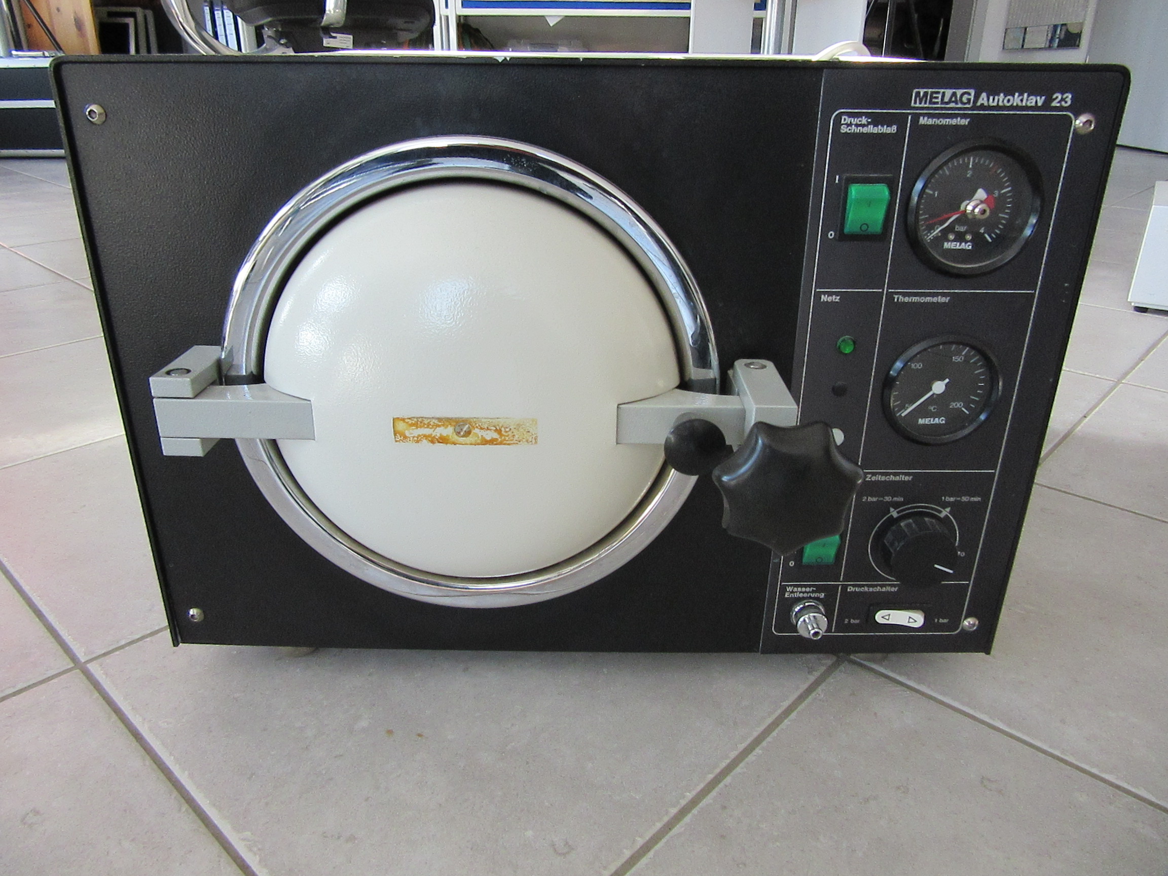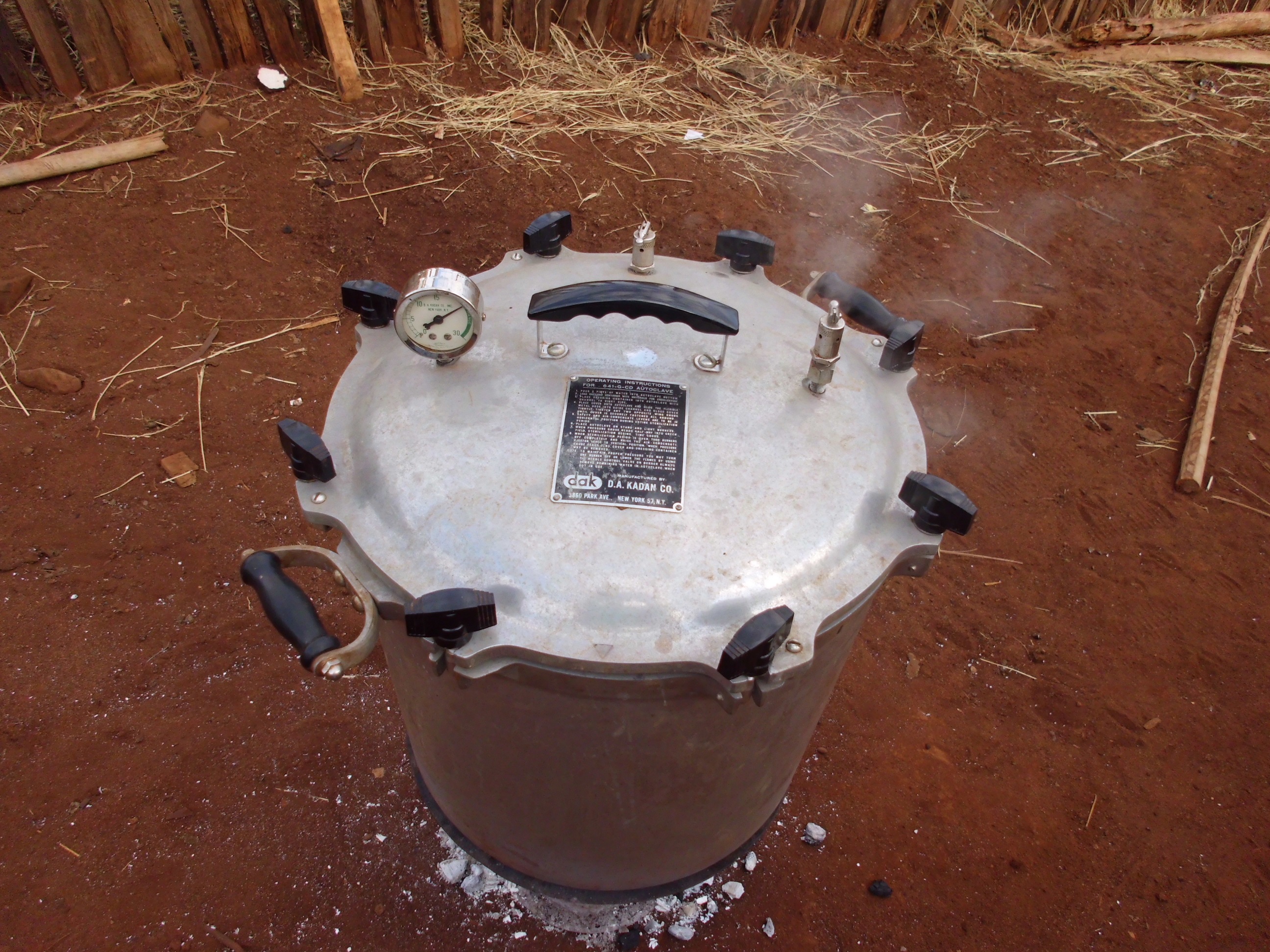 Wir haben auch 2 Sterilisiergeräte bekommen. Das ist auch eine erhebliche Verbesserung zu unserem Gerät, das momentan im Einsatz ist – es wird mit Holzkohle betrieben und ähnelt eher einem Schnellkochtopf. Als ich dort war, hat er dermaßen gezischt, dass alle Leute einen großen Bogen darum gemacht haben.