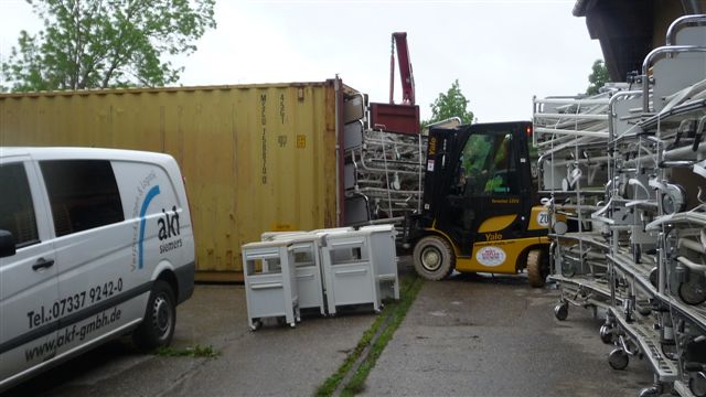 Nachdem die Betten in Ambohitsara angekommen sind, wird die Krankenstation ausgelagert und wird in neue (4 Funktionsgebäude plus Mitarbeiterwohnungen) Räume außerhalb des Basiscamps umziehen. Es ist noch 1 Untersuchungs-Liege – auch davon haben wir nicht genug – und 10 Nachtkästchen (so etwas haben die Dorfbewohner wahrscheinlich noch nie gesehen) im Container.
