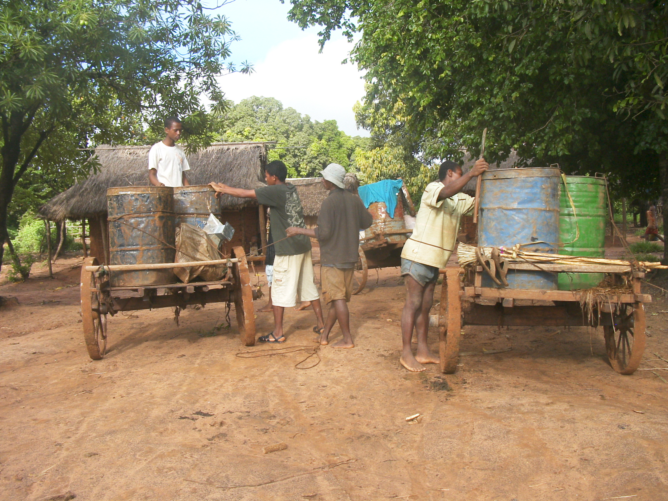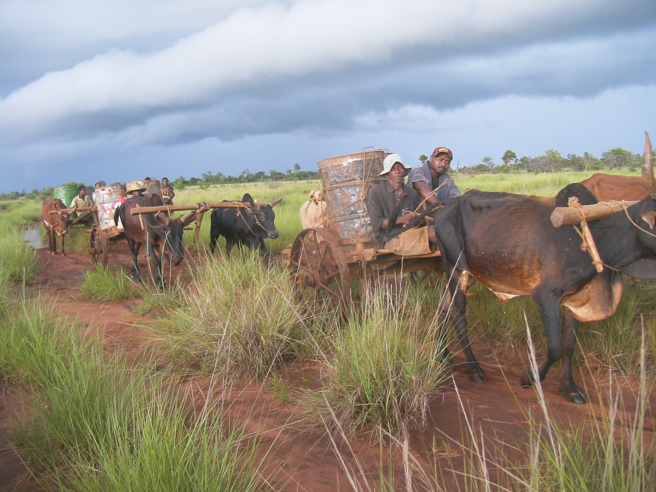 - Ochsenkarren-Treck mit Sand beladen