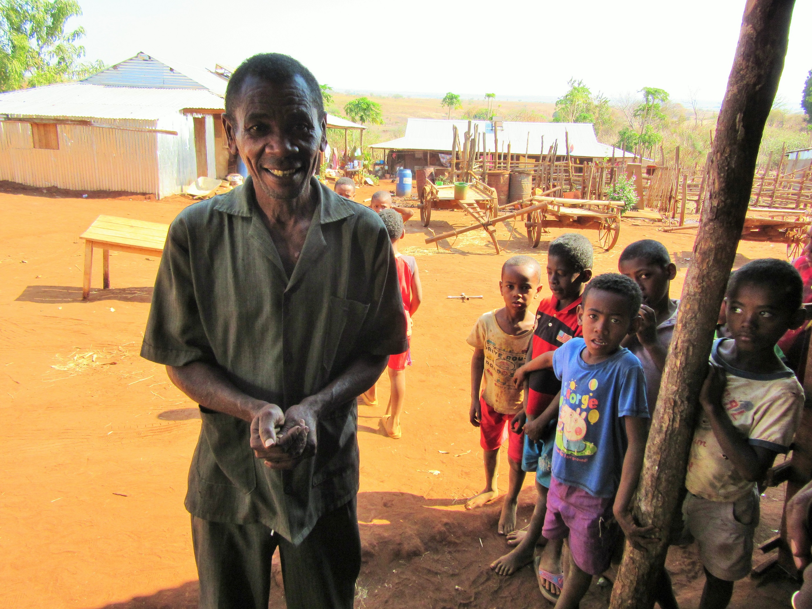 Es gibt noch eine Besonderheit beim einem der Bilder zu sehen: Ein guter Bekannter, Edoardo, der ehemalige Schamane sitzt beim Neujahrsessen auf dem Ehrenplatz. Das ist wirklich ein Novum. Edoardo ist im Sommer 2017 Christ geworden und hat sich taufen lassen. Seitdem hat er es sehr schwer gehabt. Wegen seiner Bekehrung wurde er richtiggehend verfolgt: Als wir im September 2017 im Rahmen der Rüstzeit kurz in Ambohitsara waren, gab es plötzlich im Dorf (was sehr ungewöhnlich ist) Rindfleisch zu kaufen. Das war Edoardos Kuh. Jemand hat ihr einfach einen Fuß abgeschnitten und man musste sie dann schlachten. Als einer seiner Söhne einmal mit dem Ochsenkarren nach Port-Berger gefahren ist, fehlten plötzlich die Räder. Jemand hatte sie abmontiert und mitgenommen….