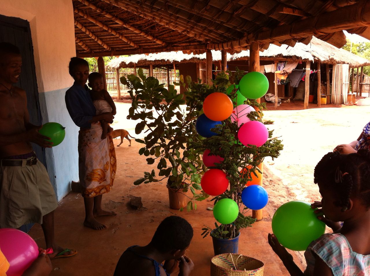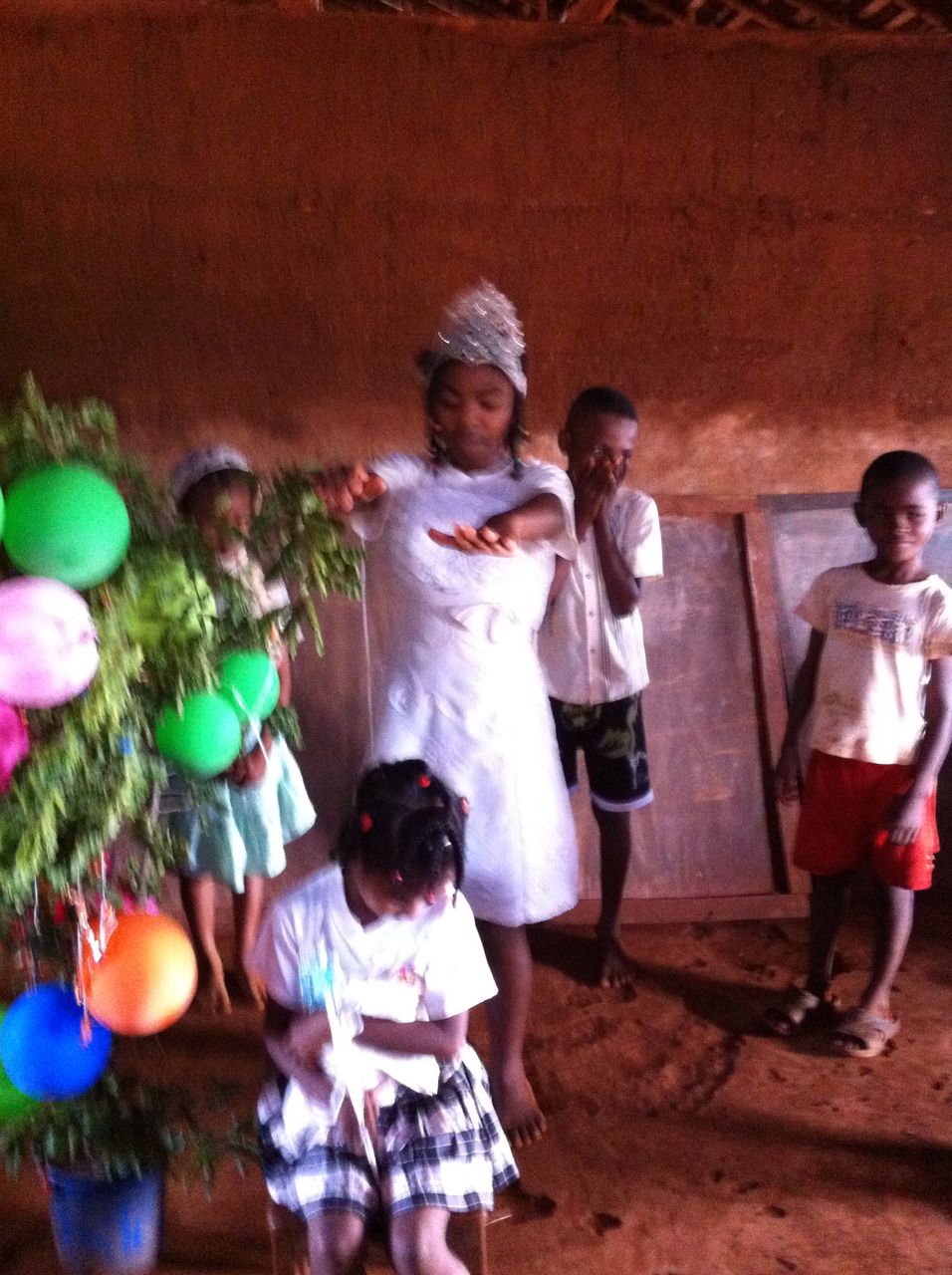 Für die Christen in Ambohitsara ist Weihnachten ein fröhliches Fest – auch ohne Geschenke. Dieses Jahr gab es ein Krippenspiel, einen selbstgebastelten Weihnachtsbaum mit Luftballons als Christbaum-Kugel-Ersatz und vieles mehr. Nach der Feier wurde der „Weihnachtsbaum“ (in Wirklichkeit Äste vom Jackfruit-Baum und einer anderen Staude) wieder aus dem Gebäude, wo die Feier stattfand, in „Sicherheit“ gebracht – sie hatten Angst, er wird geklaut…. Es wurde auch viel gesungen und getanzt.