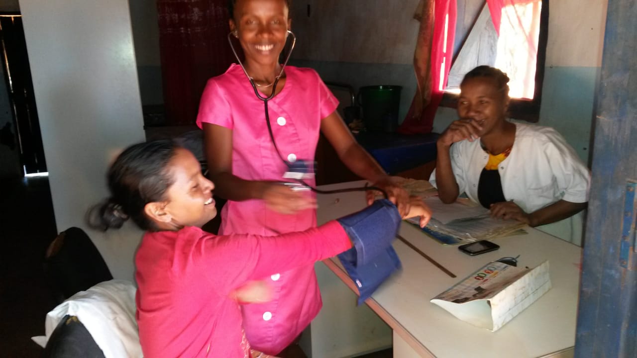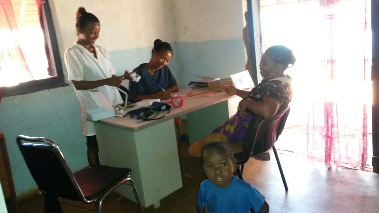 Wir „klappern“ auch oft die Dörfer in unserer Kommune und auch darüber hinaus, ab. Wir sehen nach den Leuten, testen sie mit einem Schnelltest auf Malaria und behandeln sie sofort bei positivem Befund.