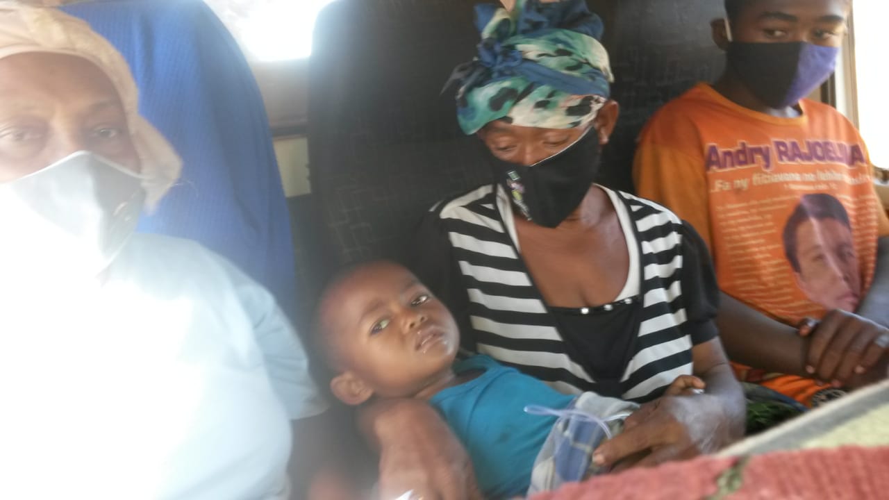 Nach einer mühsamen Fahrt sind sie gegen Mittag gut in Antsohihy angekommen. Mühsam, weil das Kind an Krampfanfällen litt und sie (wegen Corona-Restriktionen) oft von den Gendarmen aufgehalten wurden. Sie haben alle da übernachtet (unser Team vermutlich im SADKO) und sind dann am nächsten Morgen mit der Familie wieder nach Ambohitsara gefahren. Am Abend sah Christina meiner Meinung nach schon um Welten besser aus….